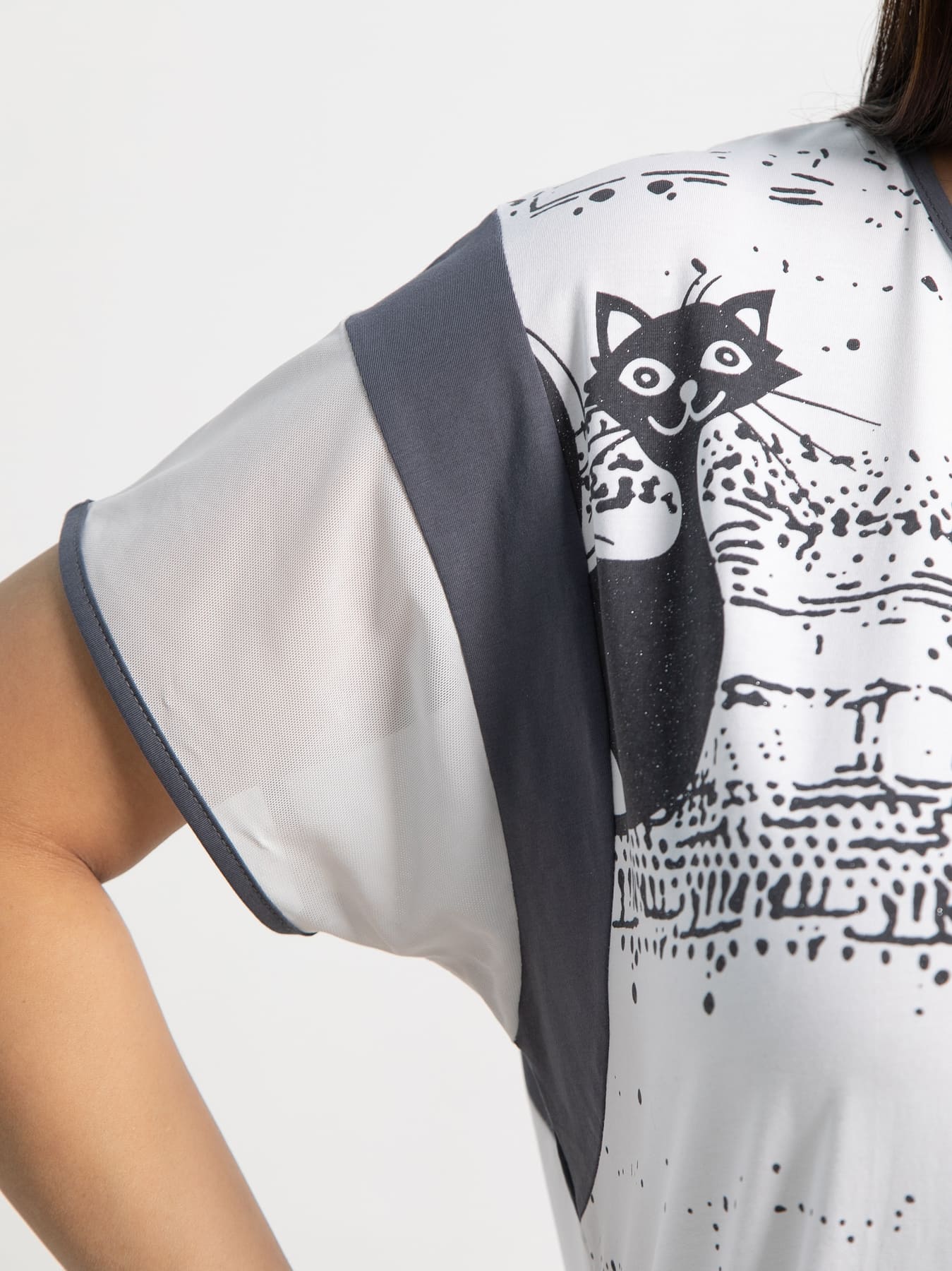 Освежите свой летний гардероб с этой стильной и удобной блузкой. Лёгкая и свободная, она идеально подходит для тёплых дней и станет незаменимым элементом вашего повседневного стиля. Благодаря универсальному дизайну и стильному принту, блузку можно сочетать с джинсами, шортами, юбками или лёгкими брюками, создавая разнообразные летние образы.