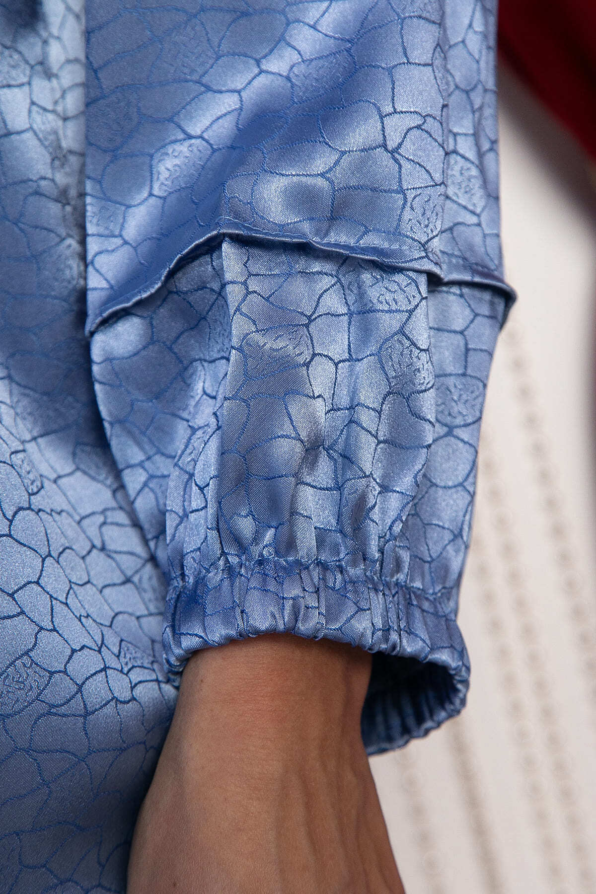 Изящная блуза свободного кроя, подчёркивающая вашу индивидуальность и утончённый вкус. Модель имеет прямой силуэт, спущенные плечи и округлую горловину. Рукава слегка расширяются книзу и собраны на резинку, что позволяет регулировать его длину. По бокам расположены небольшие разрезы. Завершающим штрихом служит стильный съёмный аксессуар — декоративный цветок на булавке, добавляющий образу игривости и завершённости. Эта блуза станет незаменимой как для повседневного гардероба, так и для особых случаев.