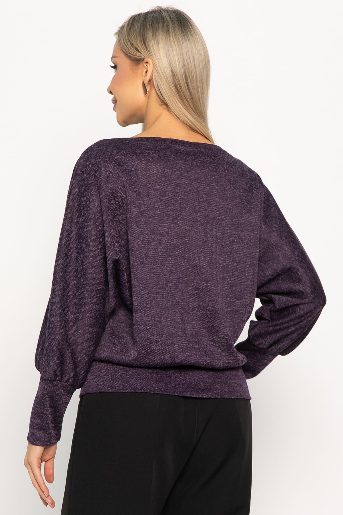 Стильная блузка из меланжевого трикотажа — это идеальное сочетание комфорта и элегантности. Однотонный голубой цвет придает ей универсальность, позволяя легко вписываться в любой гардероб. Свободный крой обеспечивает свободу движений, создавая непринужденный и уютный образ. Особенность модели — рукава «летучая мышь». Блузка прекрасно подходит для повседневных образов, работы и прогулок, гармонично сочетая комфорт с модным внешним видом.