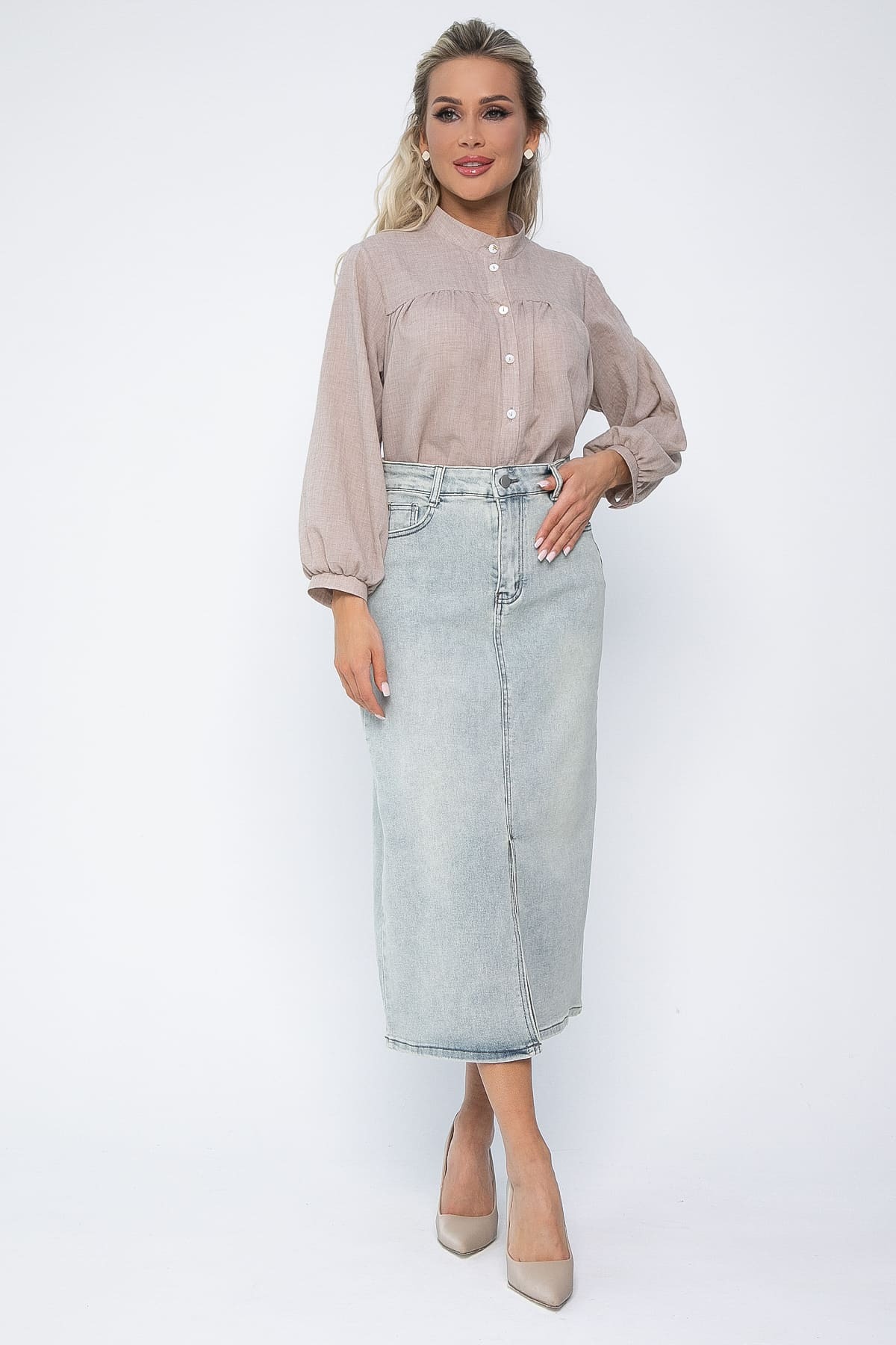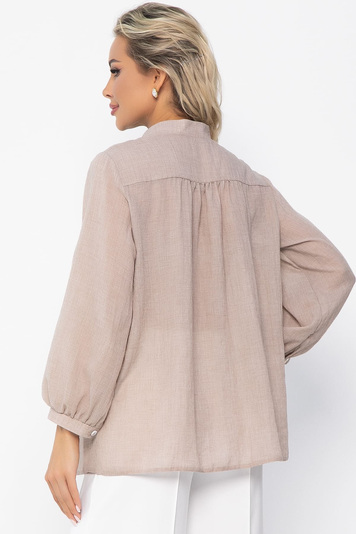 Блузка из марлевки — превосходный вариант для летнего гардероба. Она лёгкая, воздухопроницаемая и приятная на ощупь, что делает её идеальным выбором для жаркой погоды. Модель имеет кокетку спереди и сзади, а также изящную драпировку в этих же областях. Рукав длиной 7/8 завершается манжетом.