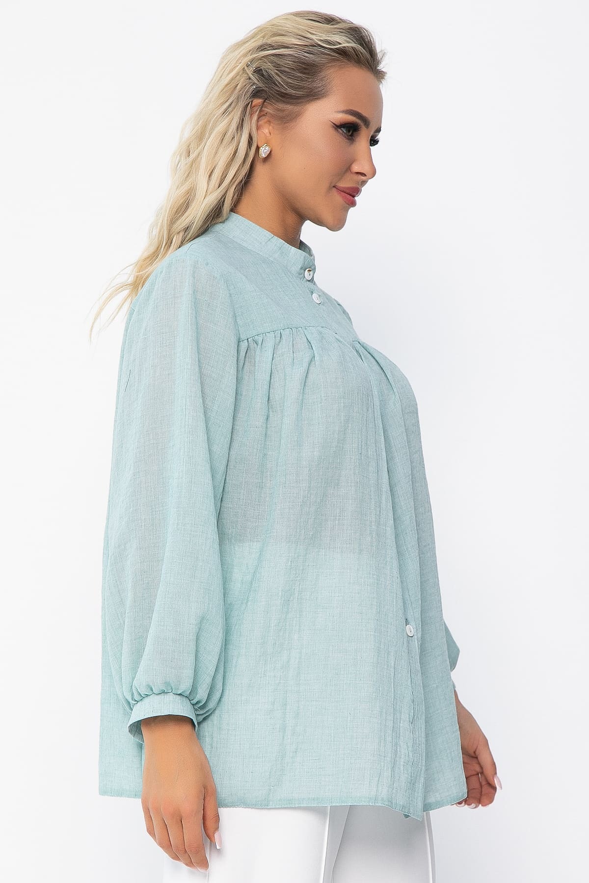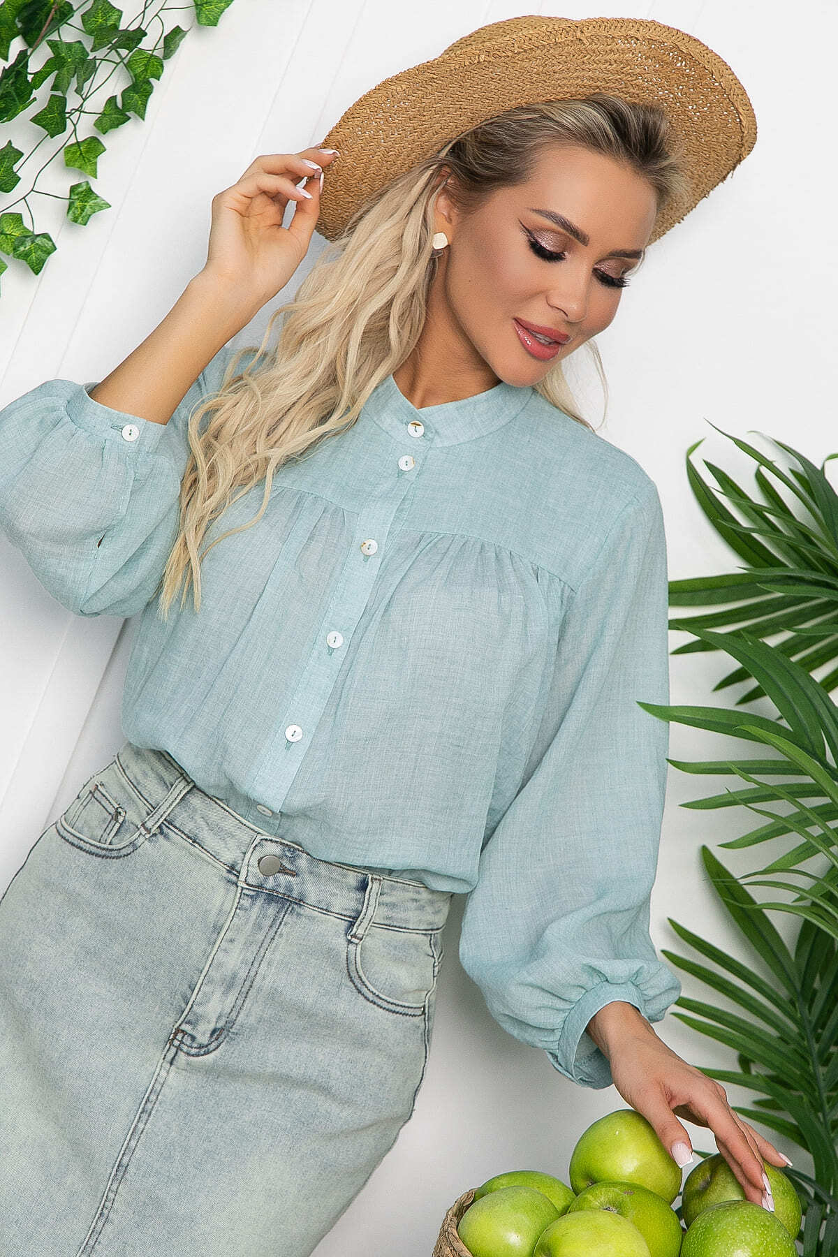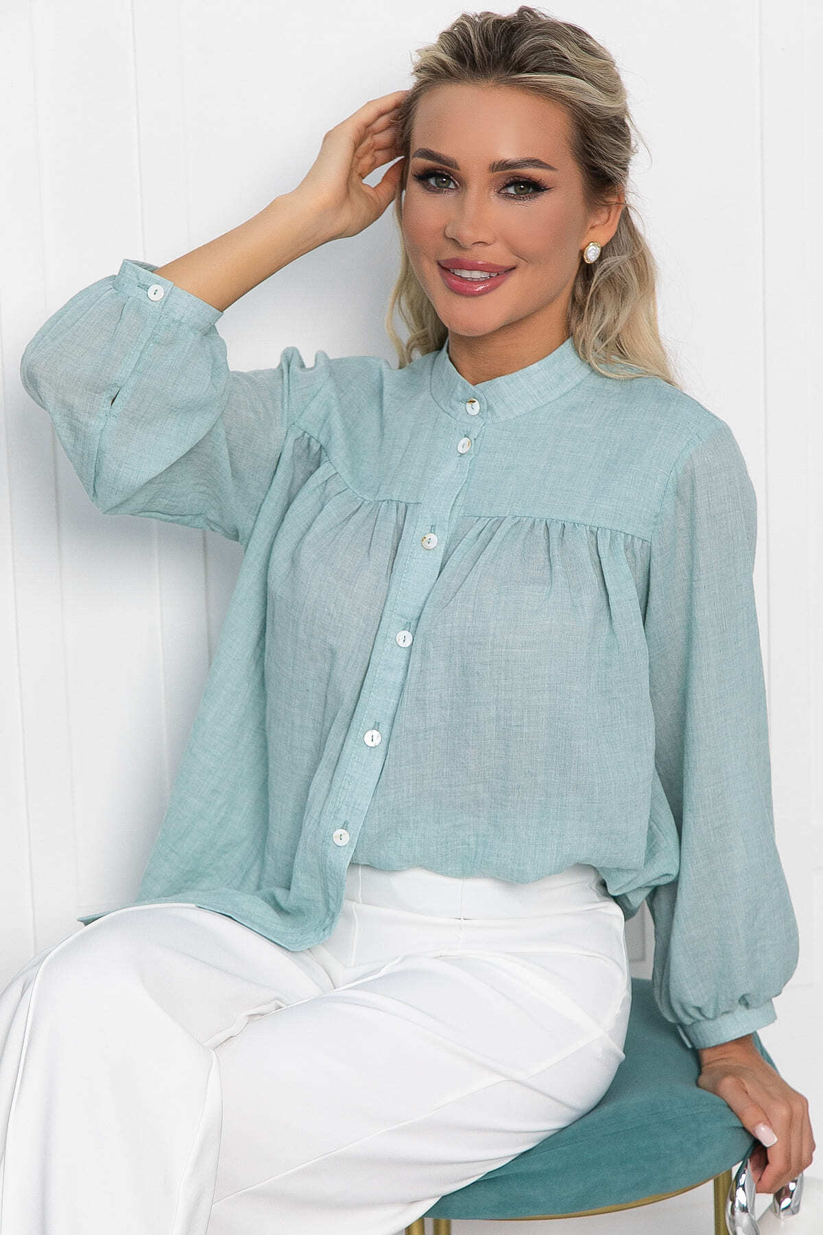 Блузка из марлевки — превосходный вариант для летнего гардероба. Она лёгкая, воздухопроницаемая и приятная на ощупь, что делает её идеальным выбором для жаркой погоды. Модель имеет кокетку спереди и сзади, а также изящную драпировку в этих же областях. Рукав длиной 7/8 завершается манжетом.