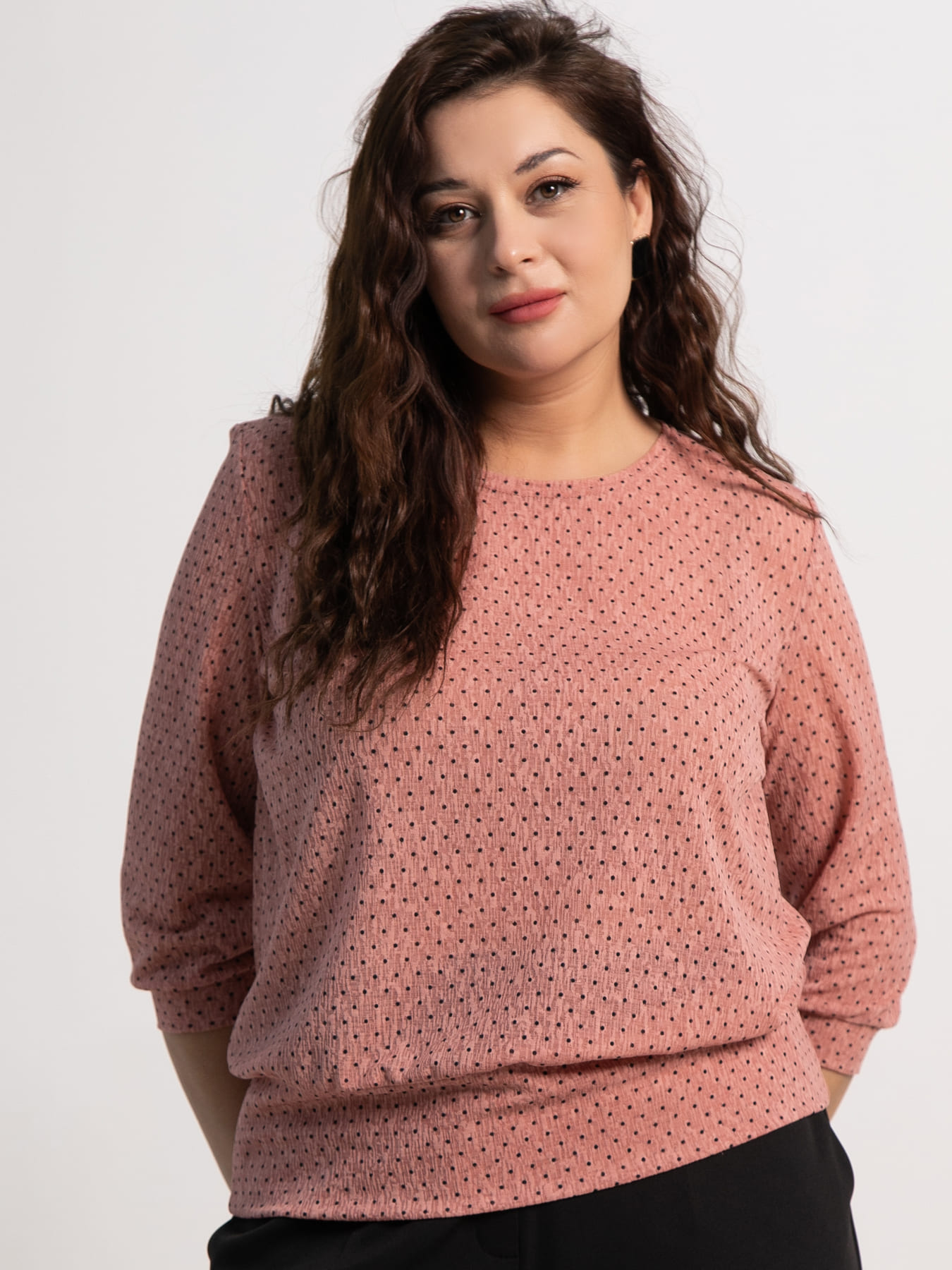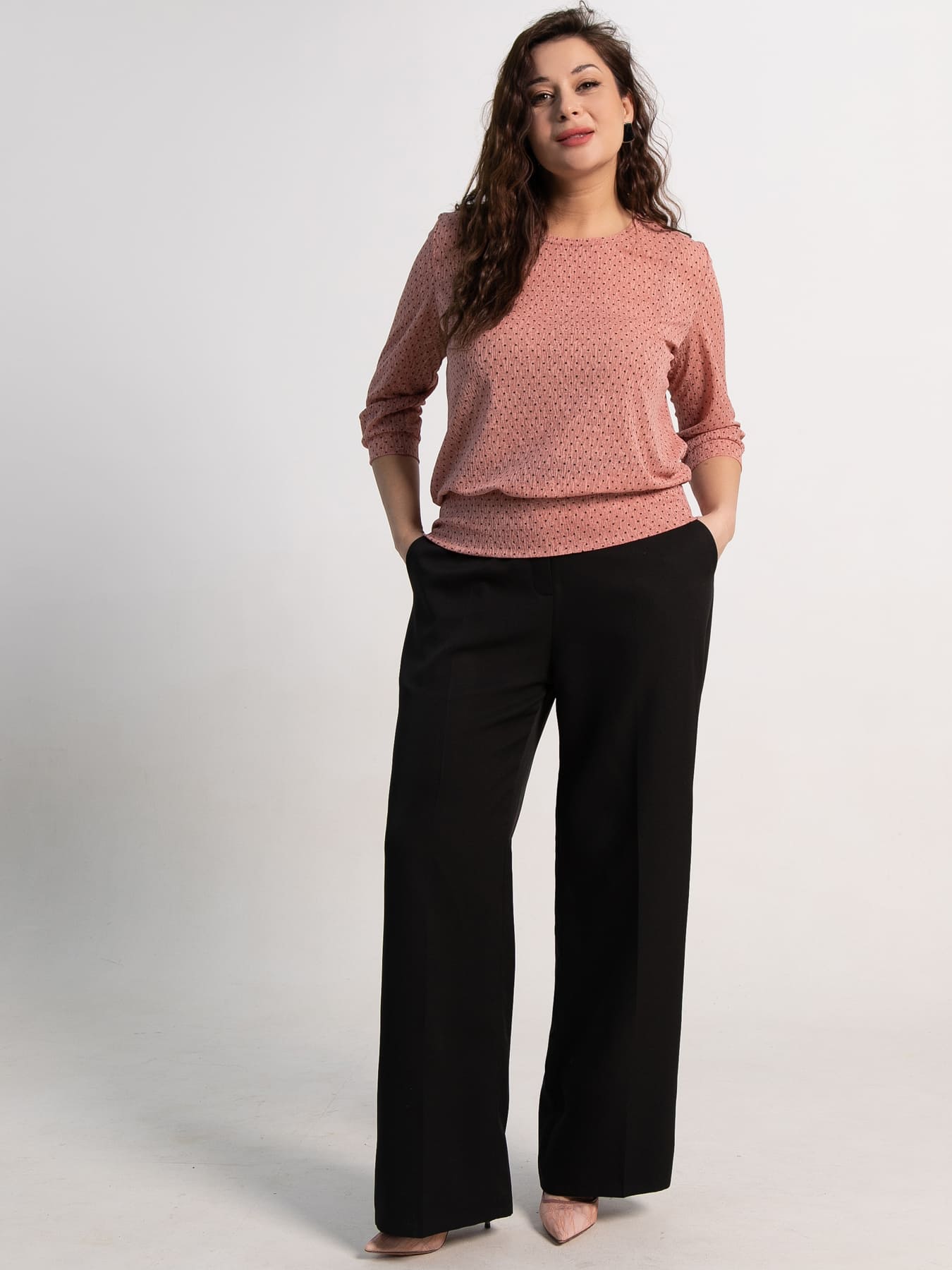 Комфортная и стильная трикотажная блузка свободного кроя – ваш идеальный выбор для повседневного образа! Эта модель подарит вам уверенность и элегантность в любой ситуации, будь то рабочие будни, уютные выходные или спокойные вечерние прогулки по городу. Блузка легко комбинируется с любыми брюками, юбками и джинсами, открывая широкие возможности для модных экспериментов. Округлый вырез горловины и рукава три четверти на манжетах придают изделию женственность и изящество. По низу блузки расположена широкая планка. Создавайте стильные и уютные образы с нашей трикотажной блузкой, дарящей вам легкость и уверенность в себе каждый день!