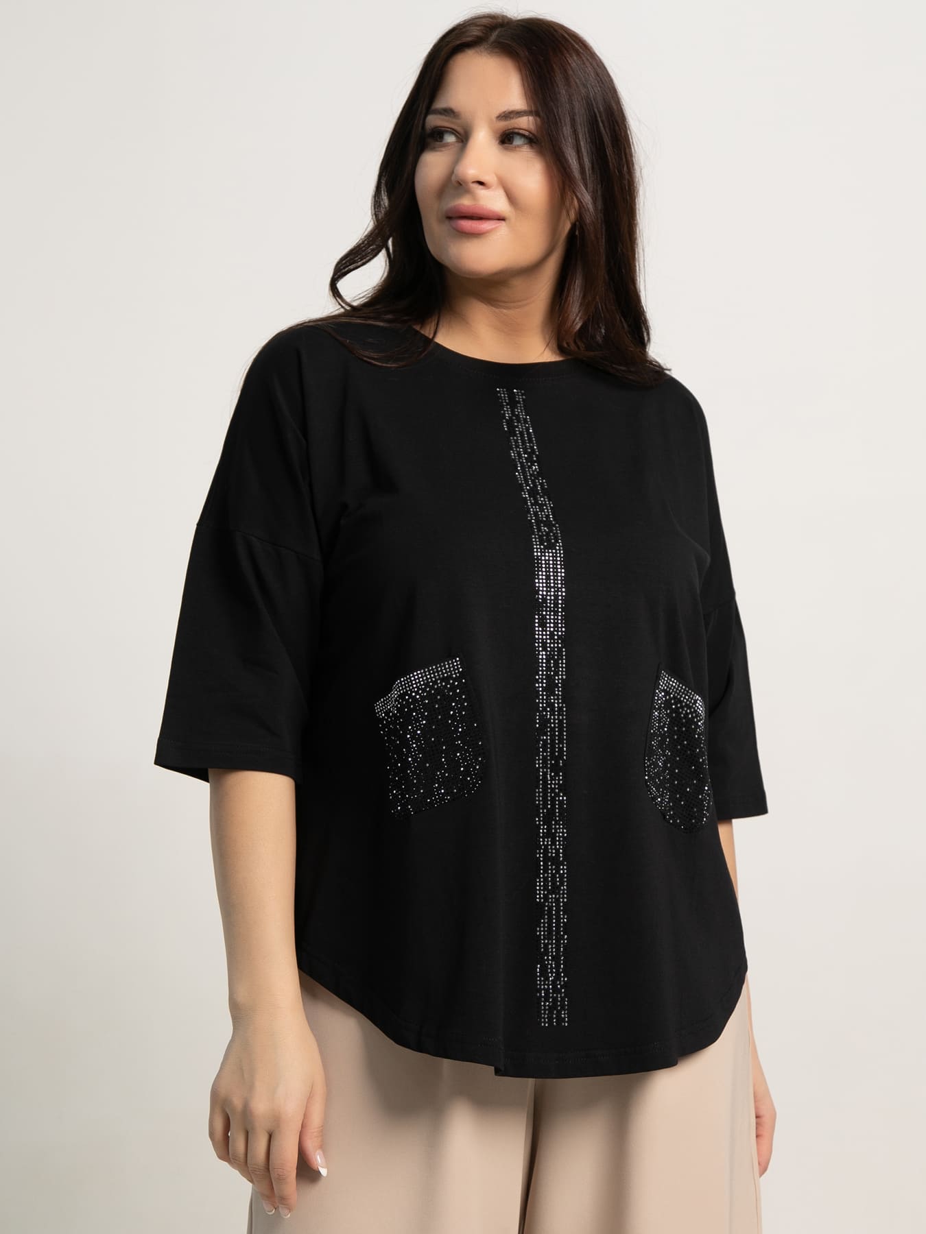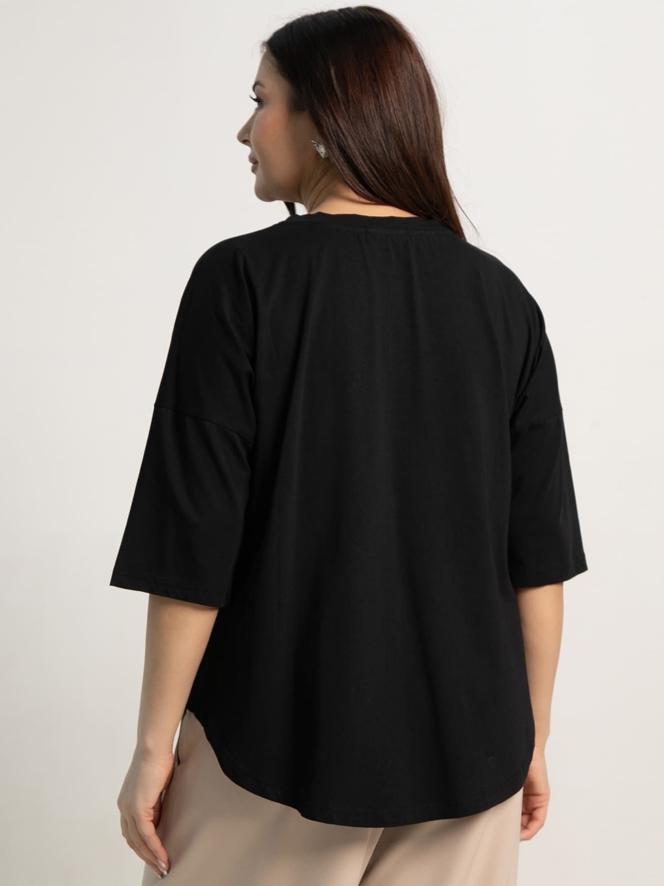 Обновите гардероб этой элегантной и универсальной блузкой, идеально сочетающей в себе комфорт и модный дизайн. Плечо спущено, и рукав длиной 3/4 добавляют непринужденности и легкости образу. Округлая горловина, окантованная обтачкой, придает аккуратный вид. Низ спинки и переда плавно закруглены к боковым швам с обеих сторон. Эта блузка станет отличной основой для повседневных или более торжественных образов, подчеркнув вашу индивидуальность и чувство стиля!