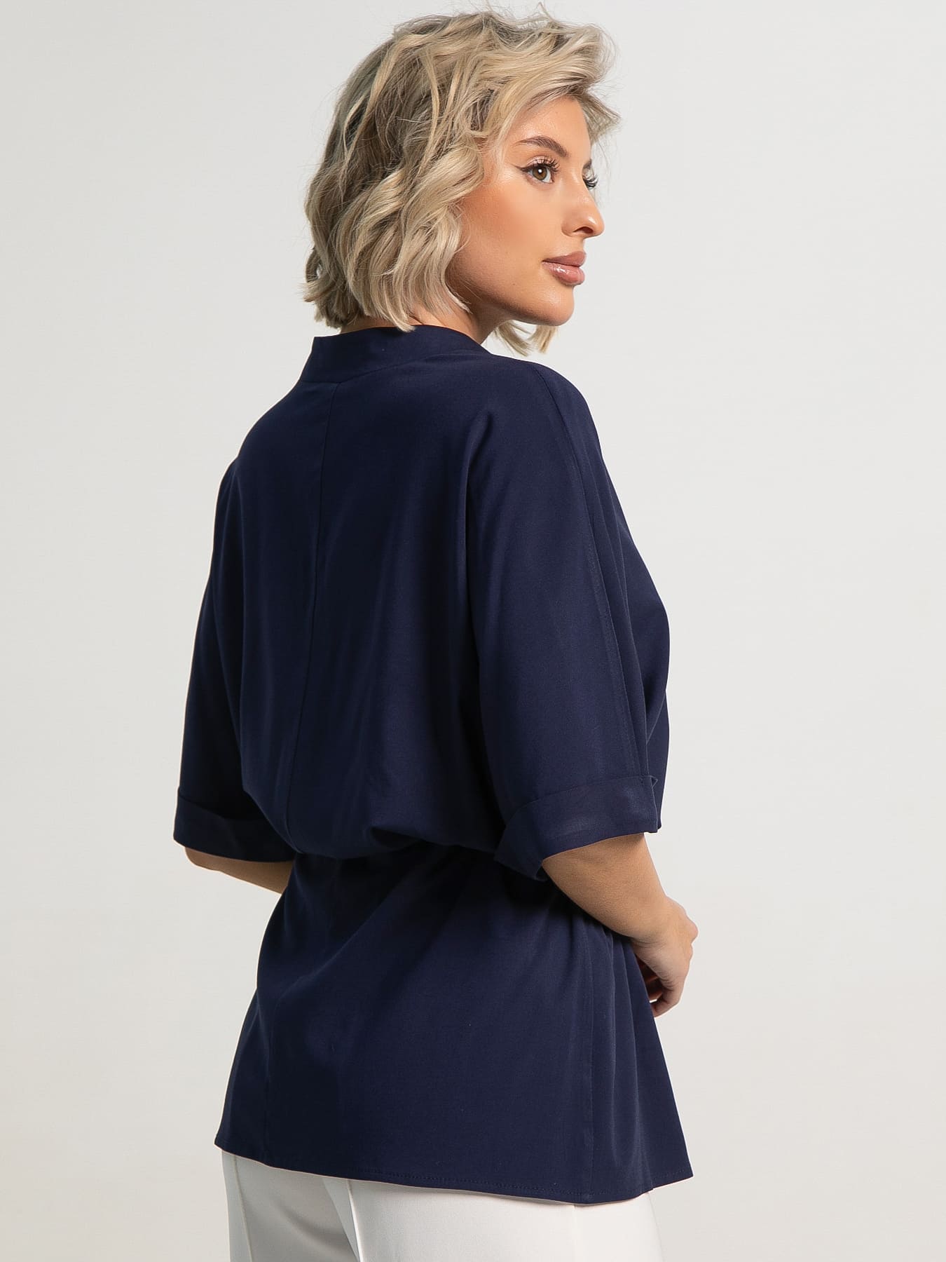 Изящная блуза в однотонной расцветке идеально дополнит ваш летний гардероб. Модель с спущенным плечом и воротником-стойкой придаёт образу утончённый вид. Пояс на талии на кулиске позволяет легко регулировать силуэт, подчеркивая вашу фигуру. Станет вашим любимым элементом гардероба, позволяя легко создавать стильные и комфортные образы для любого случая!