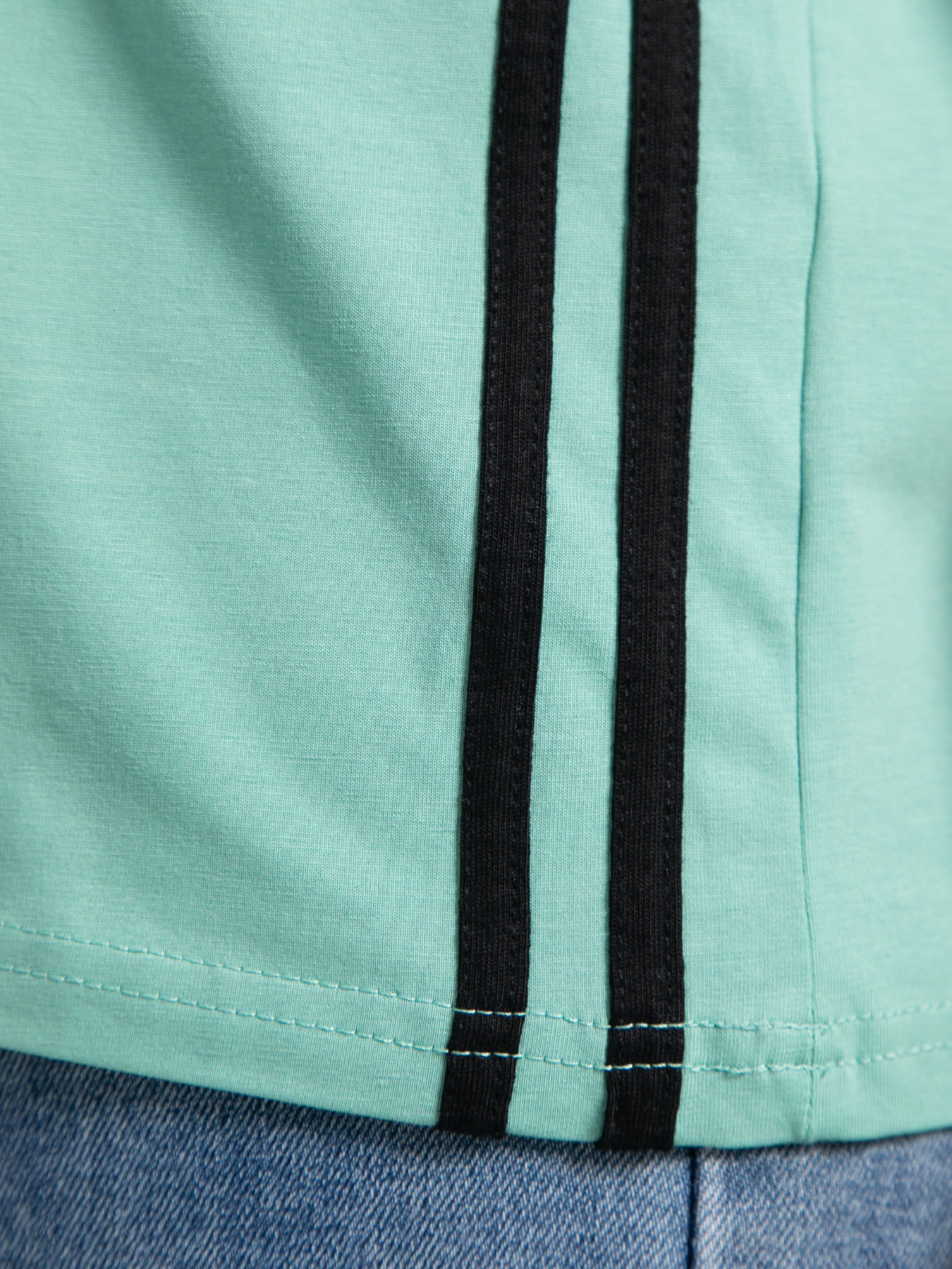 Внесите в свой образ яркие акценты с помощью этой потрясающей блузки! Контрастные полоски по бокам придают модели особый шарм, визуально вытягивая силуэт и добавляя динамики. Эти декоративные элементы делают блузку не просто однотонной, а интересной и стильной. Удобная кулиска на горловине. Блузка прекрасно сочетается с шортами, джинсами и юбками.
