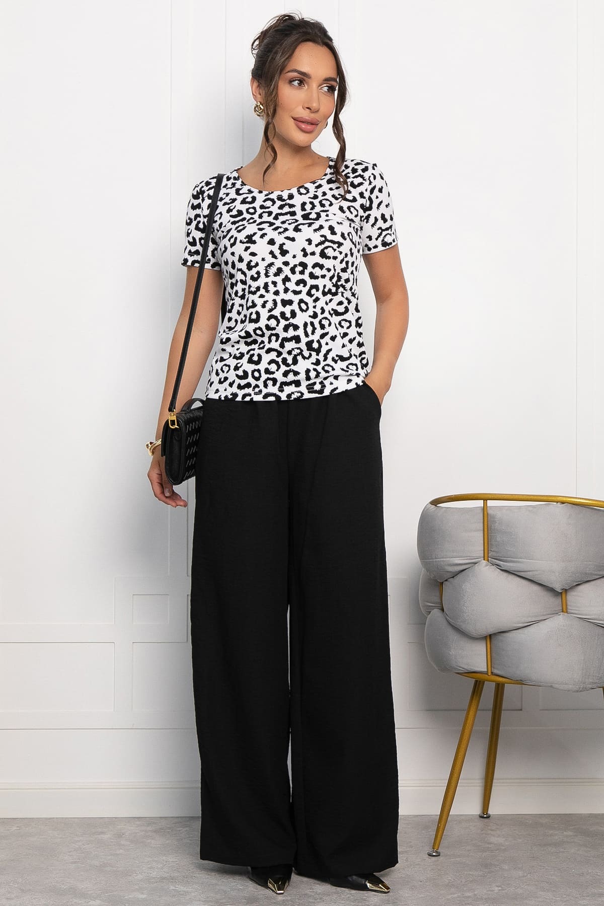 Леопардовая блузка в черно-белой гамме из мягкого трикотажа — это отличный выбор для тех, кто хочет придать своему образу игривости и свежести. Её стильный принт с анималистичным рисунком добавляет дерзости и выразительности, становясь ярким акцентом в гардеробе. Эта блузка прекрасно подходит для создания повседневных образов и легко сочетается как с джинсами, так и с шортами. Она станет незаменимым элементом гардероба для прогулок, отдыха на природе и повседневной носки.