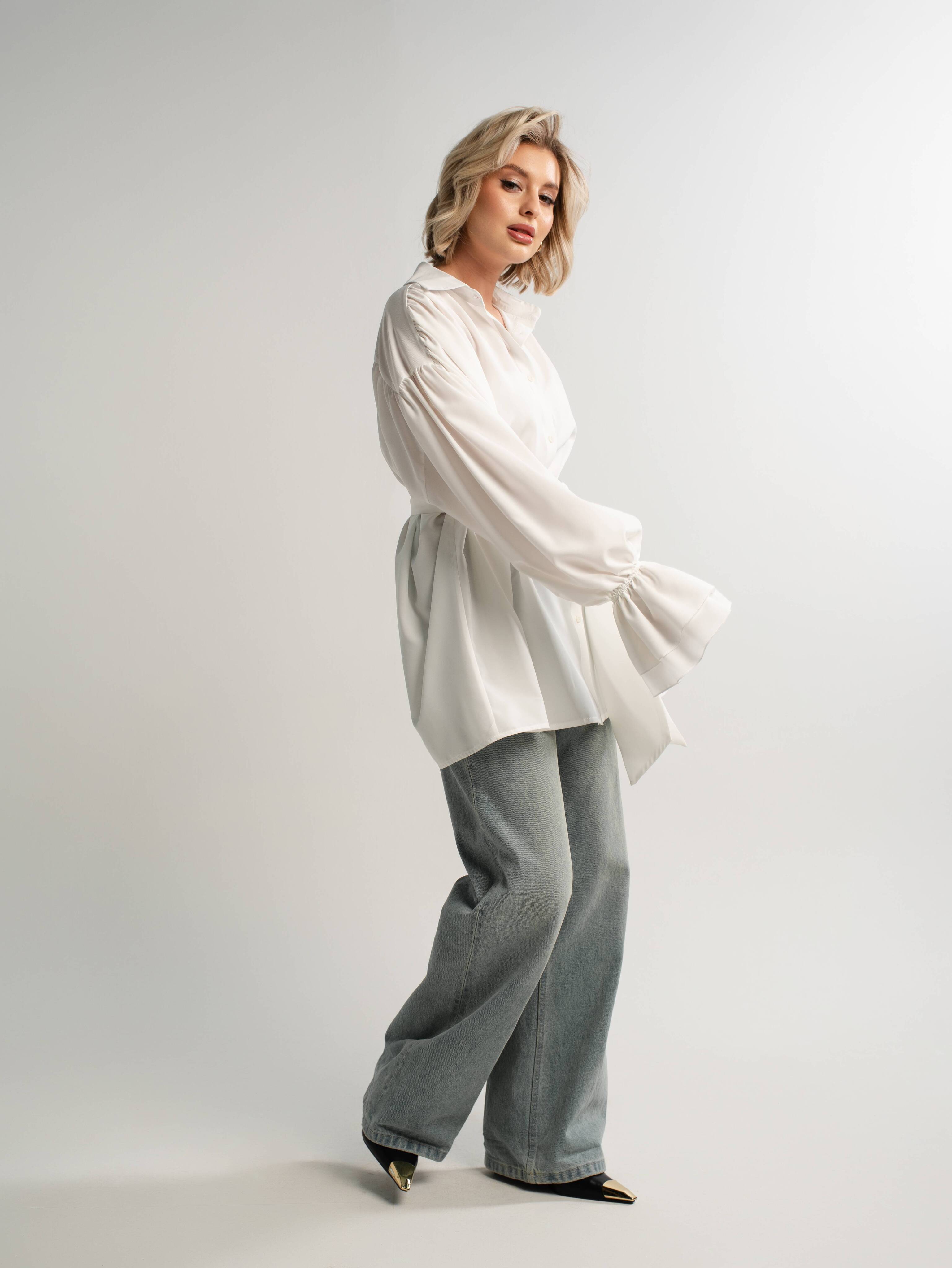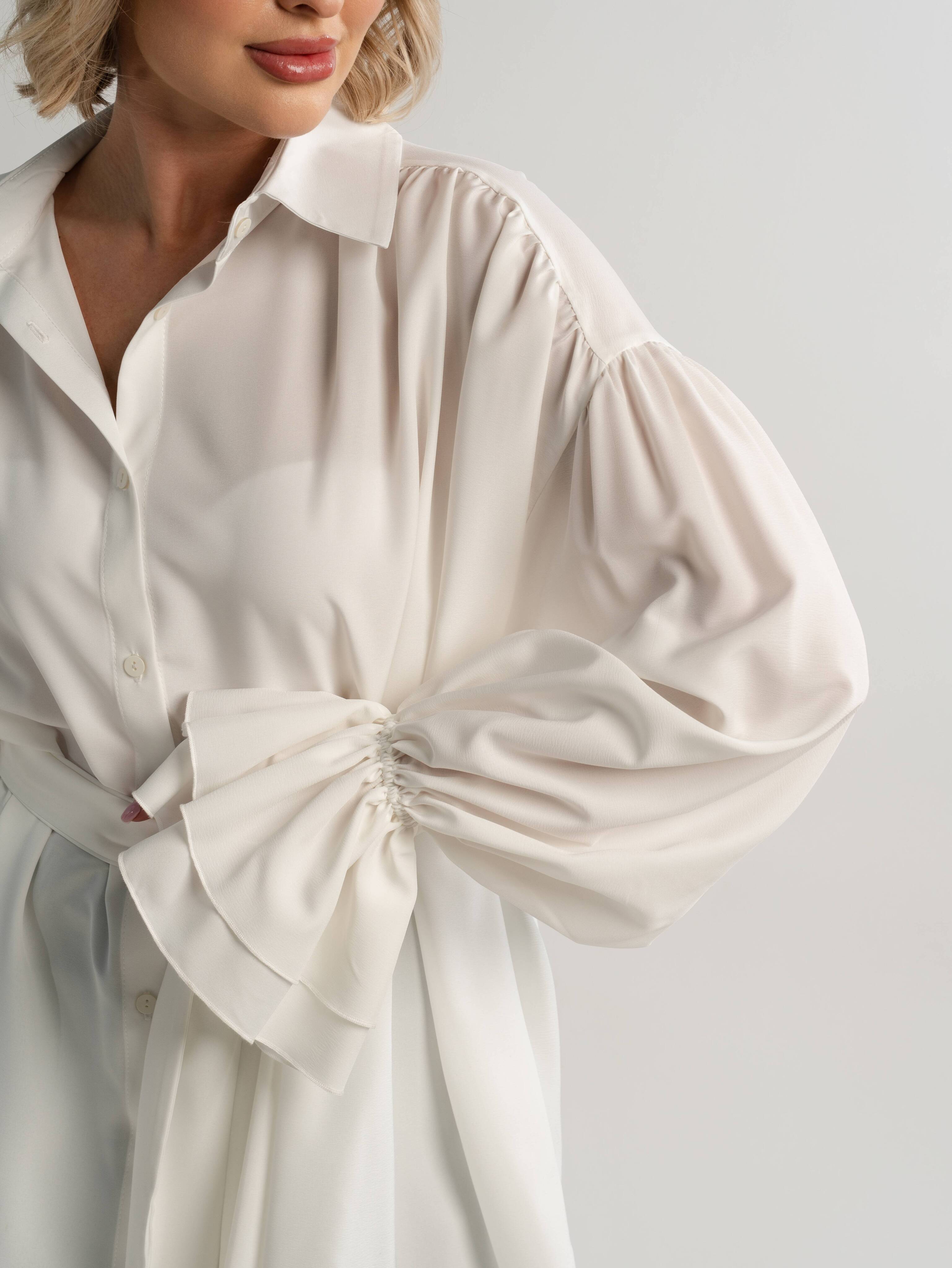 Откройте для себя идеальное сочетание элегантности, комфорта и романтического настроения с нашей женской блузкой, дополненной стильным шарфом. Эта модель, созданная для того, чтобы подчеркнуть вашу женственность, обеспечивает свободу движений и дарит ощущение легкости и изящества. Особенностью блузки являются рукава с воланами, которые придают ей очарование и воздушность. В комплекте с блузкой идет стильный шарф, который можно носить по-разному: завязать на шее как галстук или накинуть на плечи, чтобы придать образу загадочность и изысканность. Сочетайте эту блузку с юбкой-карандаш для создания строгого делового образа, с брюками-палаццо для расслабленного стиля или с джинсами для современного и модного образа. Эта блузка станет незаменимым элементом вашего гардероба!