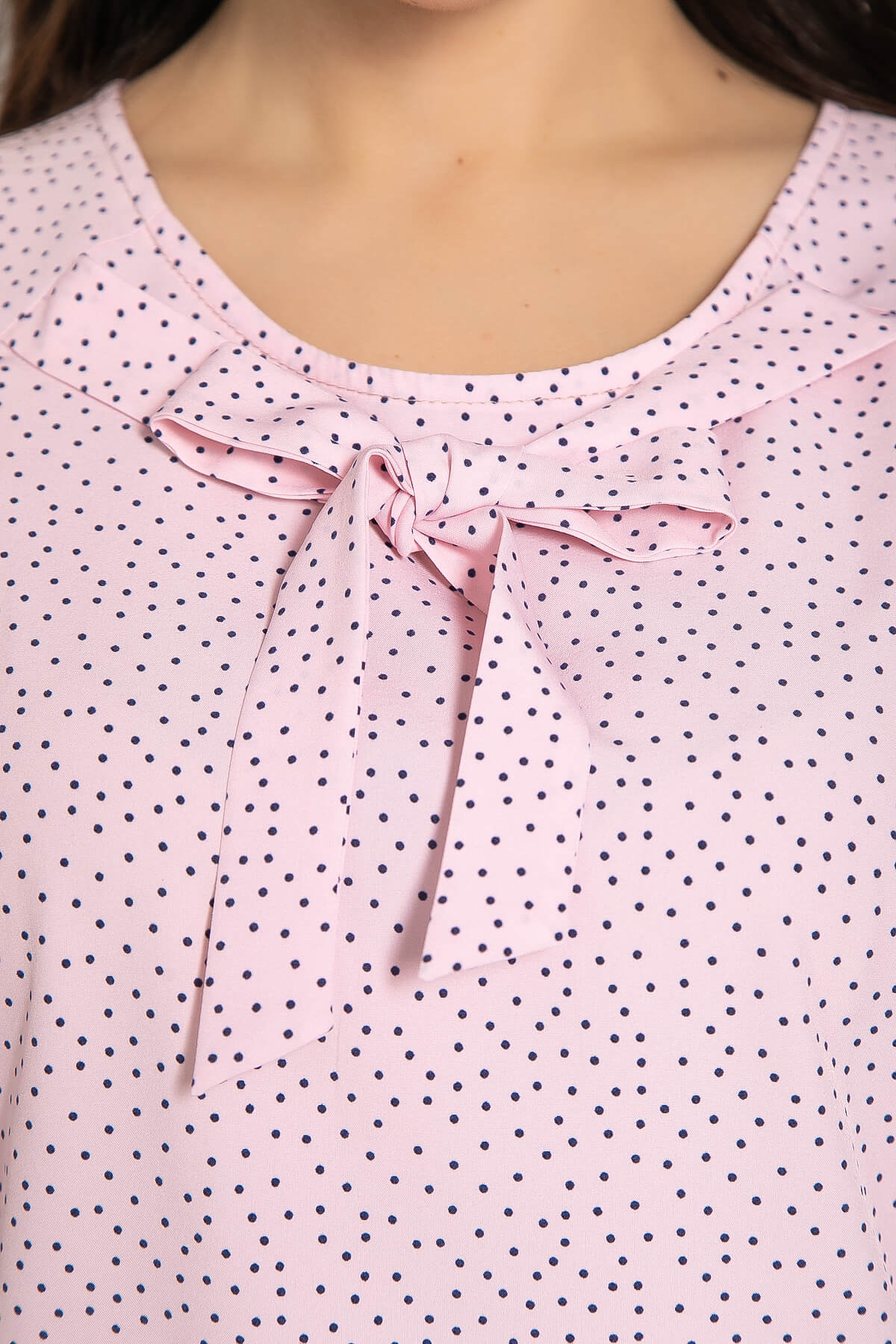 Женственная блуза с декорированным бантом выполненная из мягкого и приятного на ощупь материала, она обеспечивает комфорт и свободу движения. Актуальный принт и свободный силуэт делают эту блузку идеальной и универсальной. Рукав-реглан скроенный по типу "крылышко". Широкий размерный ряд позволяет носить блузу всем девушкам. Такая нежная модель отлично будет смотреться с однотонными брюками или юбками.