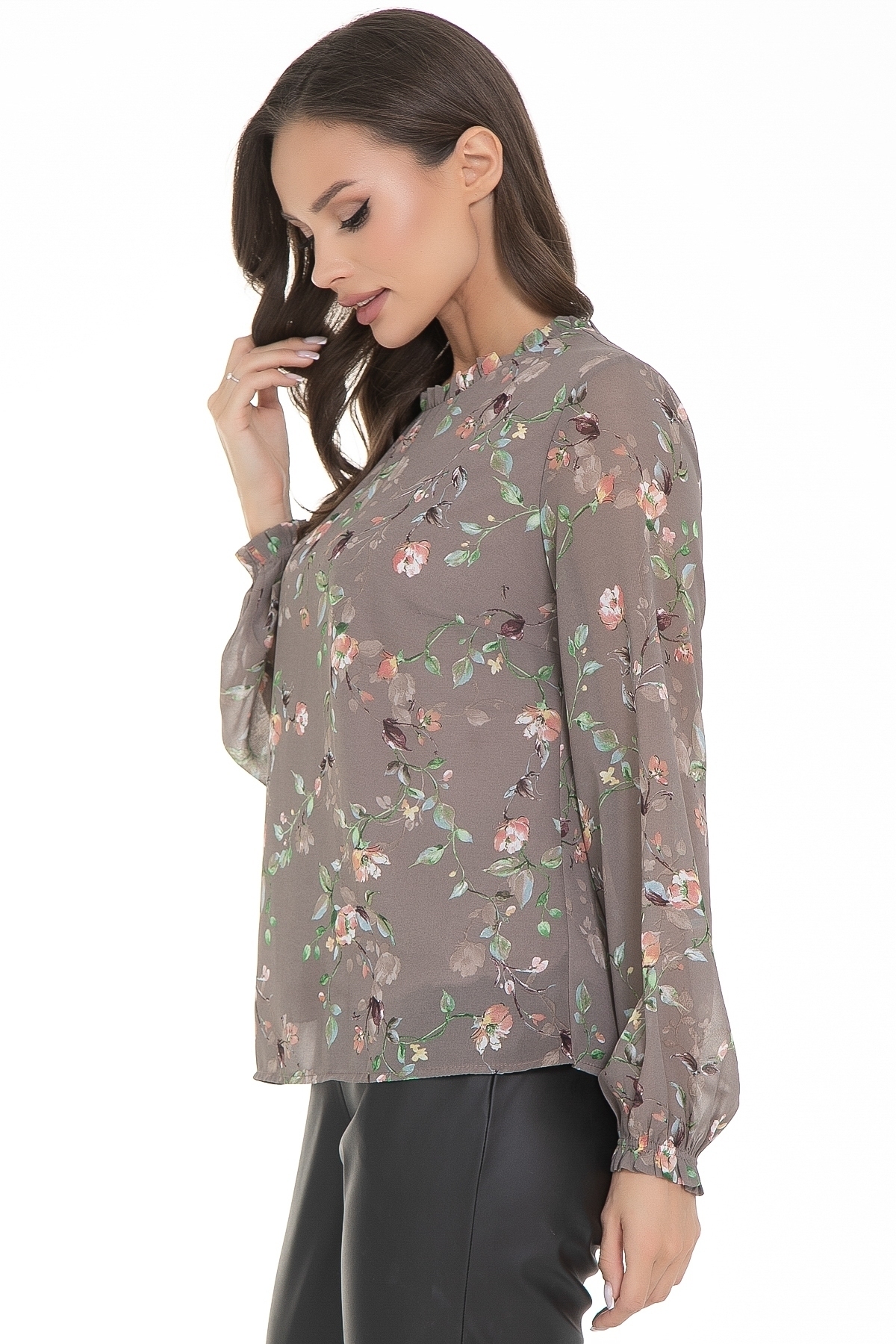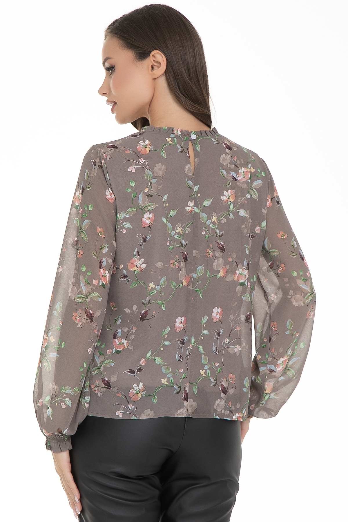 Очаровательная свободная шифоновая блузка, подчеркивающее женственность - отличное решение на каждый день или на праздник для современной стильной женщины. Шикарная модель с объемными длинными рукавами выполнена из высококачественного шифона. Круглая горловина оформлена рюшей с застежкой на пуговицу на спине.Нежная блузка из шифона на трикотажном подкладе, по переду сделаны вытачки на грудь, рукава втачные пышные, длинные, снизу собраны на резинку.