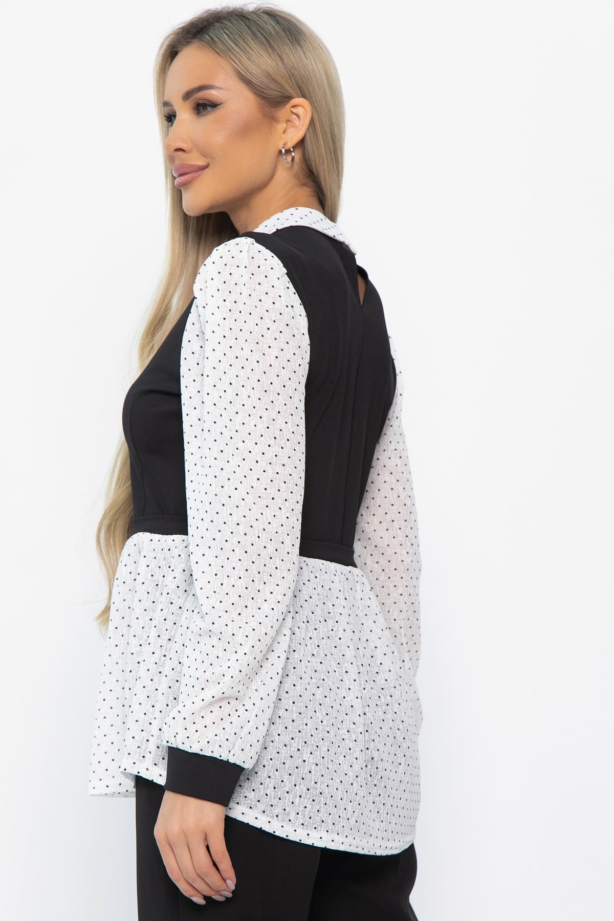 Принт : рукава и низ изделия в чёрный горох