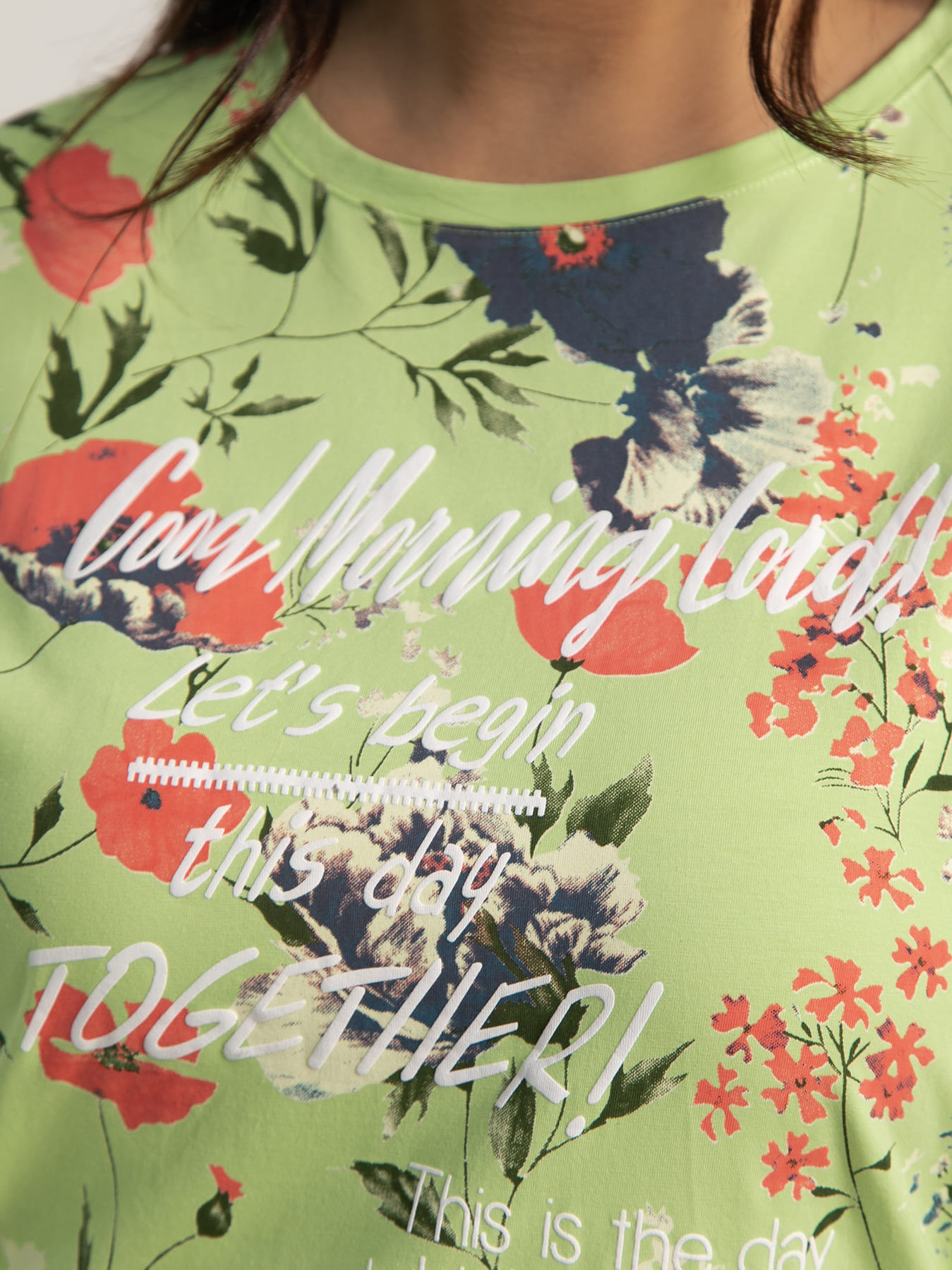 Принт: цветы и надписи