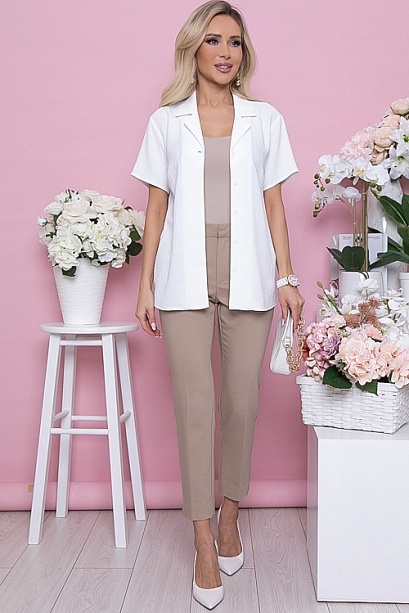 Блузка из текстильного полотна с центральной застежкой на петли и пуговицы.