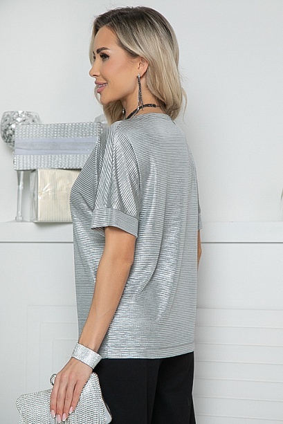Нарядная блузка из трикотажного полотна гофре с серебристым блеском,с цельнокроеными рукавами.