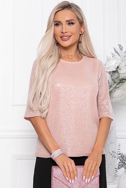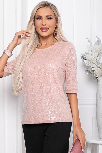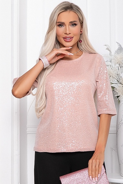 Блузка из мягкого трикотажного полотна с пайетками,посажена на подклад из креп шифона.