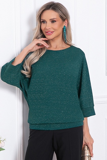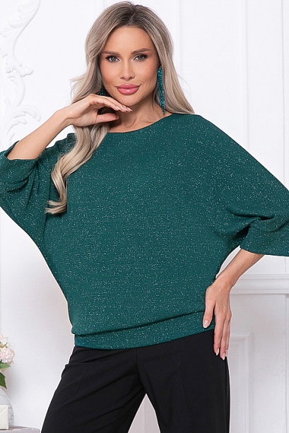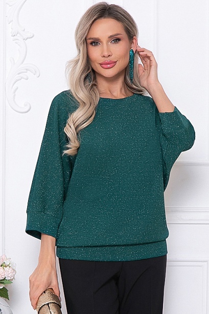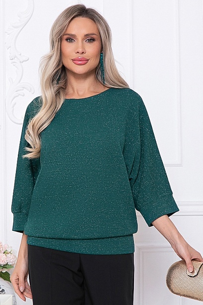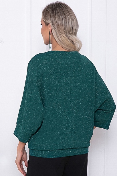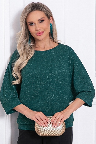 Блузка из трикотажного полотна с легким блеском с цельнокроеными рукавами.