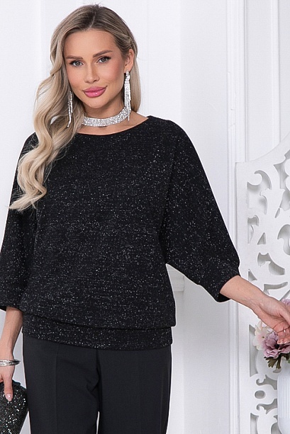Блузка из трикотажного полотна с легким блеском с цельнокроеными рукавами.