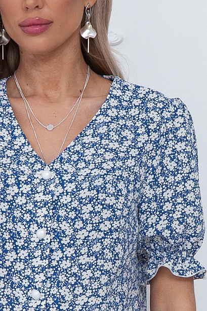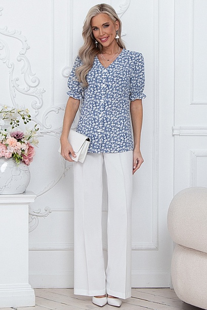 * Блузка из текстильного полотна с центральной застежкой на жемчужные пуговицы.