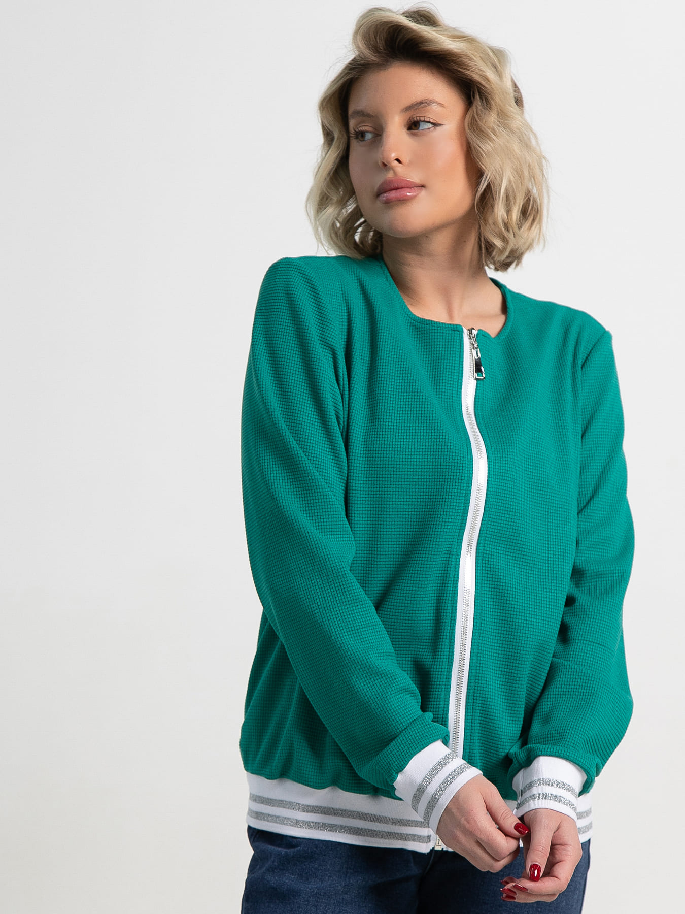 Ощутите свежесть и стиль с этим бомбером! Его яркий и современный дизайн подчеркнёт вашу индивидуальность и уверенность в любой обстановке. Длинные рукава втачного кроя, застёжка-молния спереди и удобные карманы по бокам делают его функциональным и стильным. Отсутствие воротника, манжеты и пояс из трикотажной резинки по низу обеспечивают свободу движений и комфорт. Этот бомбер — не просто верхняя одежда, а надёжный элемент вашего гардероба, который добавит яркости вашему образу и будет радовать вас весь день.