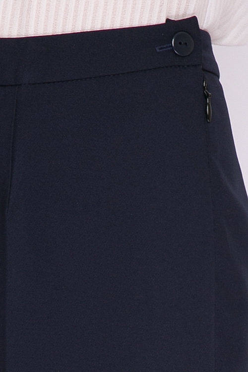 Брюки из костюмной ткани прямого силуэта,со стрелками,с высокой посадкой,на притачном поясе,застегивающимся на пуговицу.