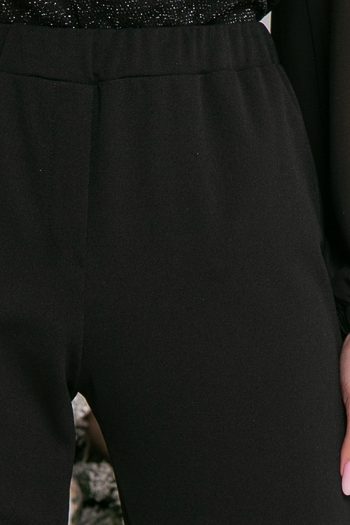 Брюки из трикотажного полотна с эластичной резиной в поясе и имитацией гульфика,хорошо подходят для нарядных образов с блузками и туниками.
