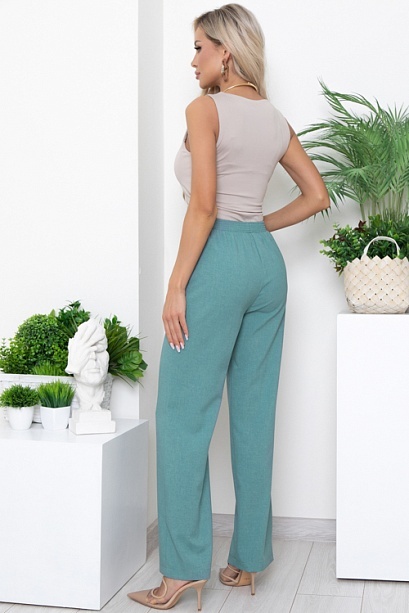 Брюки из легкой костюмной ткани прямого,свободного силуэта.Пояс на эластичной резине.