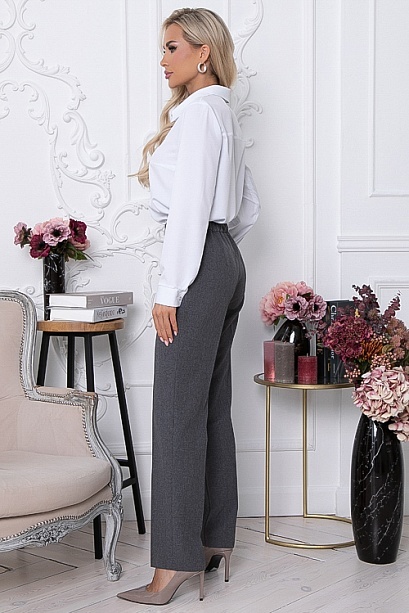 * Брюки из костюмной ткани с заутюженными стрелками,зауженные к низу.Застежка в боковом шве на потайную молнию.Притачной пояс с застежкой на пуговицу,по спинке собранный на эластичную резину.