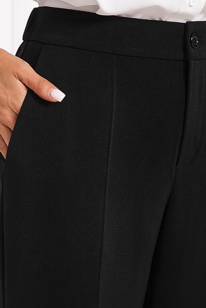 * Брюки из костюмной ткани со средней посадкой,прямого силуэта с заутюженными стрелками,по переду с боковыми функциональными карманами.Пояс притачной застегивающийся на пуговицу, по спинке собран на резину для удобства в носке.Застежка в гульфике на молнию.