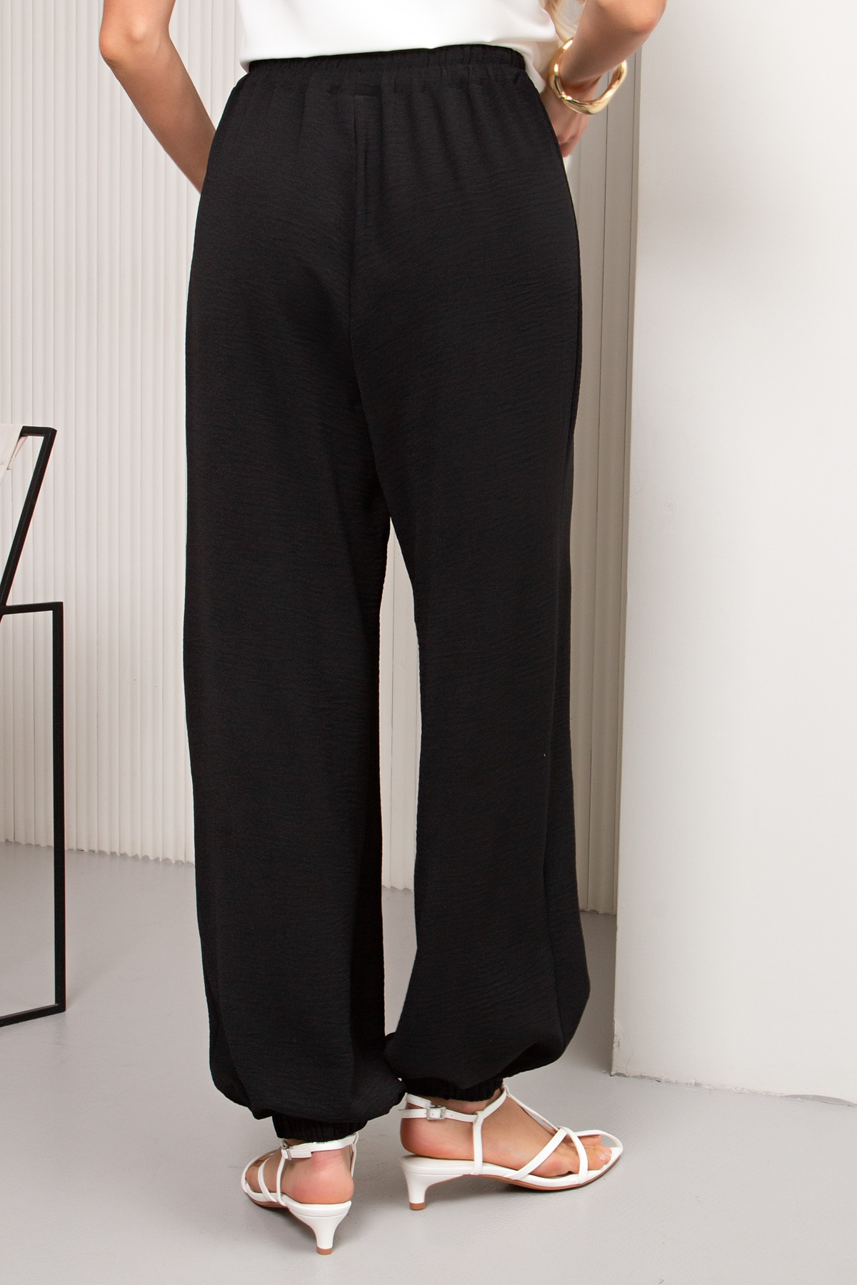 Летние брюки Алладины выполнены из смесовой ткани с эффектом крэш(жатка). Брюки свободного силуэта с комфортной посадкой по талии, которую обеспечивает притачной пояс на резинке. Низ на резинке.