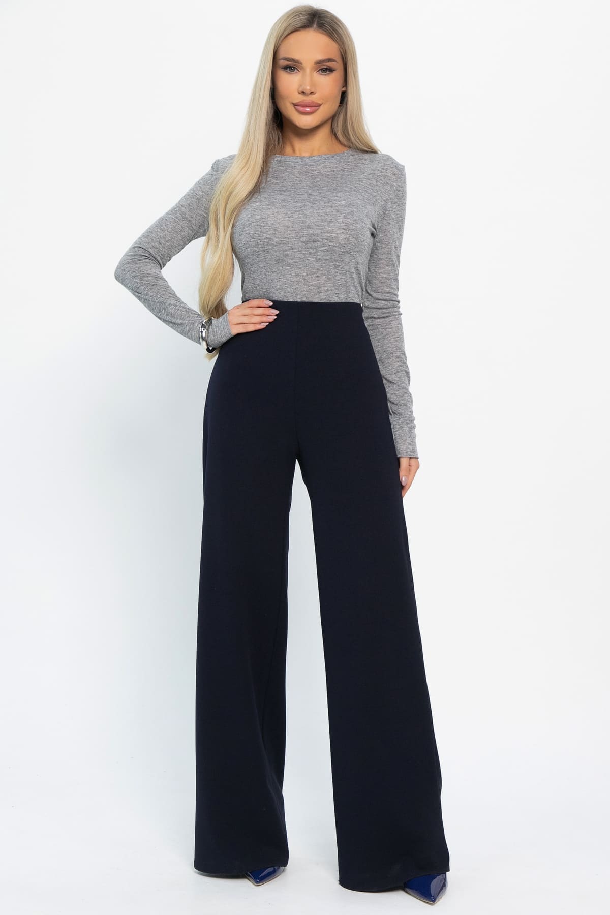 Элегантный баланс между классикой и современным удобством воплощён в наших новых женских брюках прямого кроя из трикотажа! Тёмно-синий цвет – это всегда беспроигрышный выбор, легко сочетающийся с любыми оттенками. Практичная боковая молния придаёт изделию лаконичность и обеспечивает лёгкость надевания. Эти брюки станут основой как для деловых, так и для повседневных образов, позволяя вам оставаться стильной в любой ситуации. Они обязательно займут почётное место в вашем гардеробе!