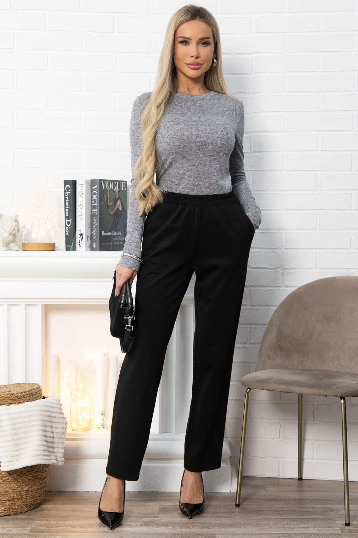 Чёрные брюки из плотного трикотажа — стильный и комфортный выбор для повседневного и делового гардероба. Модель выполнена из мягкого, эластичного материала, обеспечивающего отличную посадку и свободу движений. Благодаря классическому дизайну и классическому цвету, эти брюки легко сочетаются с различными рубашками, блузами и свитерами. Идеальны для создания элегантных и уютных образов в любой сезон.