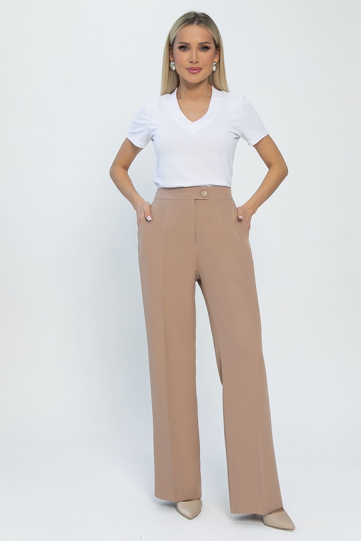 Элегантные классические брюки в оттенке мокко – основа вашего стильного гардероба! Высокая посадка выгодно подчеркивает талию, создавая женственный и утонченный силуэт. Для идеальной посадки по фигуре предусмотрена резинка по спинке пояса. Заутюженные стрелки визуально удлиняют ноги и придают брюкам строгий классический вид. Надежная застежка на молнию и пуговицу обеспечивает комфорт и уверенность в течение дня. Прекрасно вписываются в офисный дресс-код, идеально подходят для важных деловых встреч и добавляют элегантности вашему образу на особых мероприятиях.