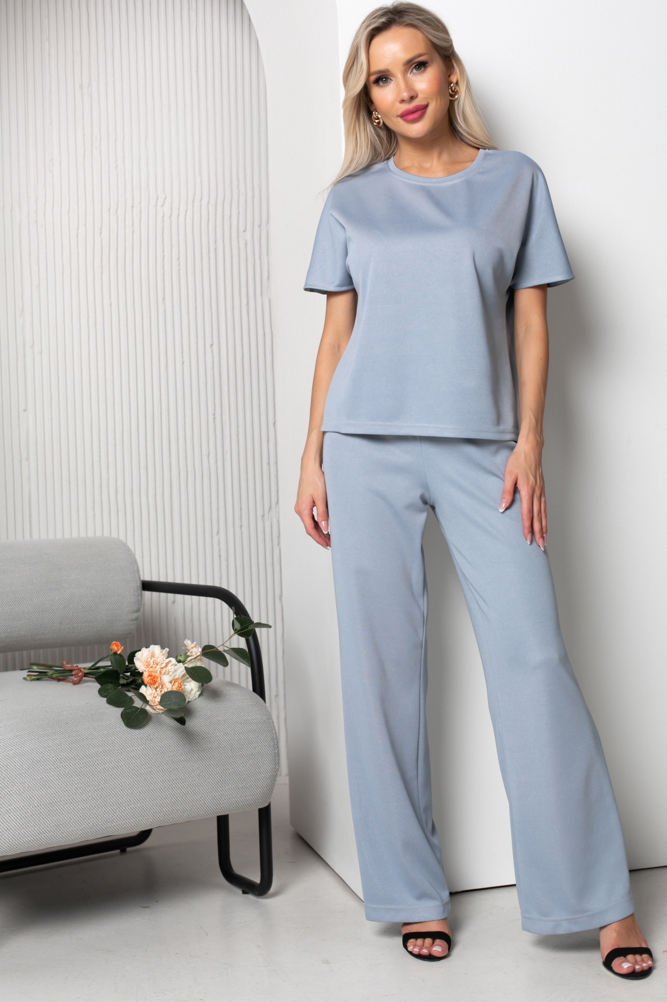 Брюки представлены с блузкой Китти №8, идеально сочетаются в комплекте, но также могут использоваться и по отдельности, в создании индивидуальных образов.
