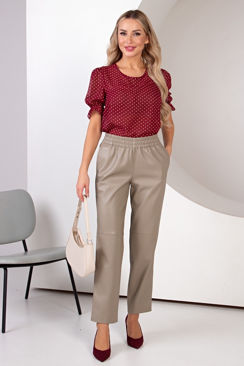 Стильные брюки прямого силуэта из эко - кожи на замшевой основе. Комфортную посадку на талии обеспечивает эластичный пояс на резинке. Модель имеет функциональные карманы в боковых швах. Брюки являются идеальной основой для создания модного образа.