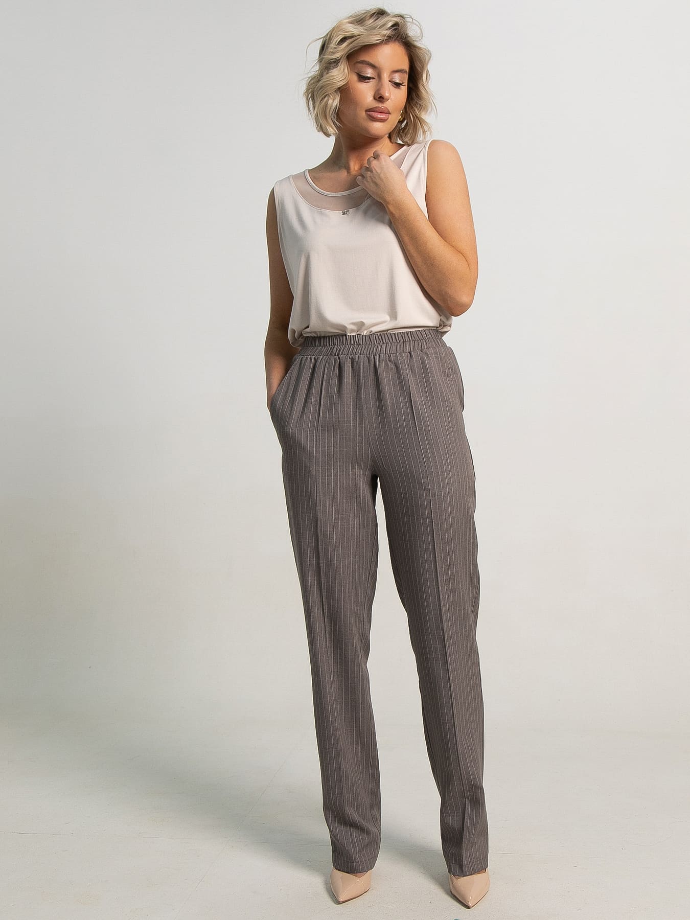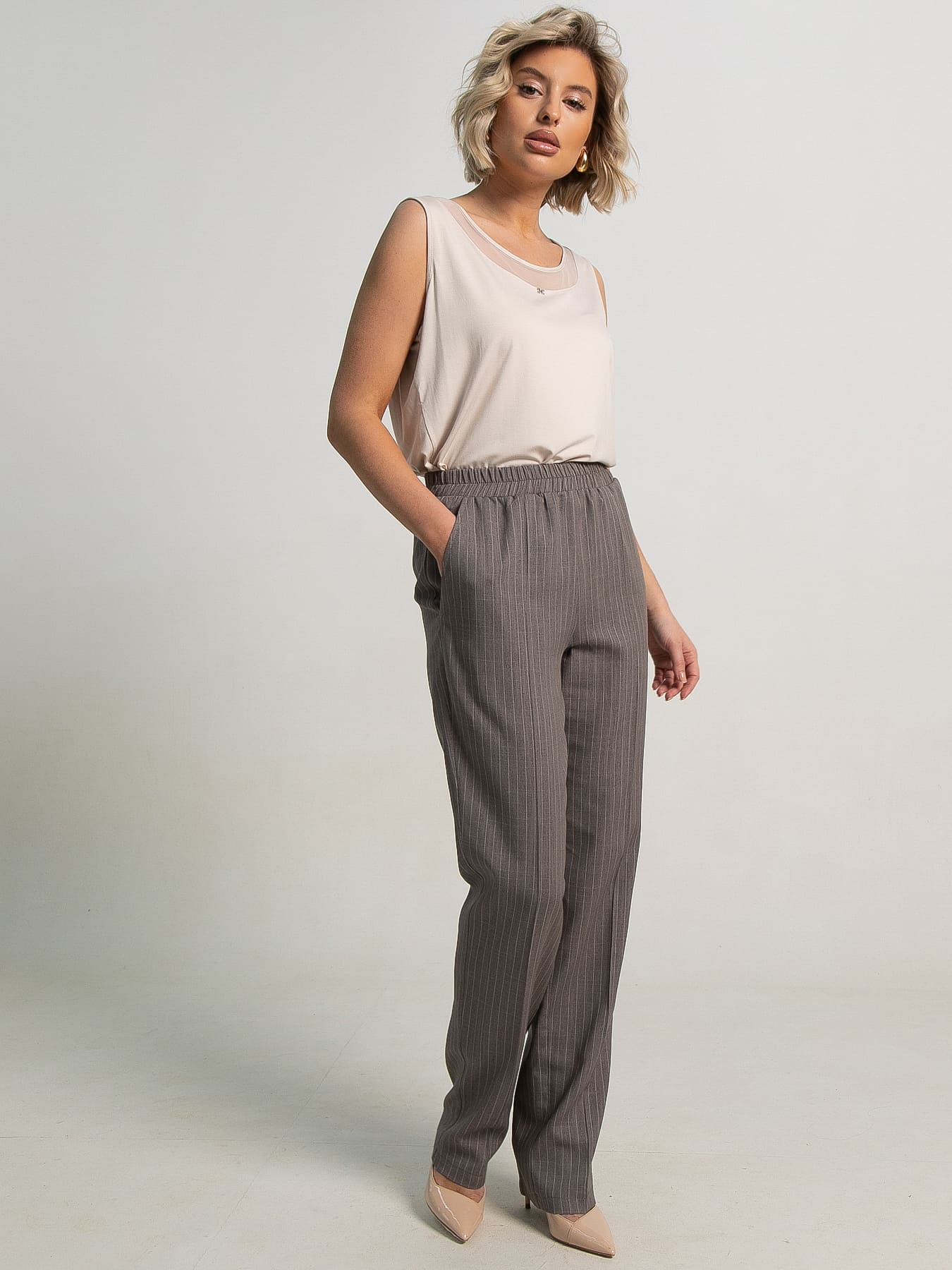 Обратите внимание на наши льняные женские брюки в полоску, которые идеально впишутся в любой гардероб. Выполненные в цвете капучино, они гармонично сочетают классику с современными модными тенденциями, создавая стильный и актуальный образ. Благодаря своей универсальности, эти брюки легко комбинируются с блузками, топами и жакетами, позволяя воплощать как деловые, так и повседневные образы. Пополните свой гардероб этими льняными брюками в полоску и наслаждайтесь удобством и элегантностью каждый день!