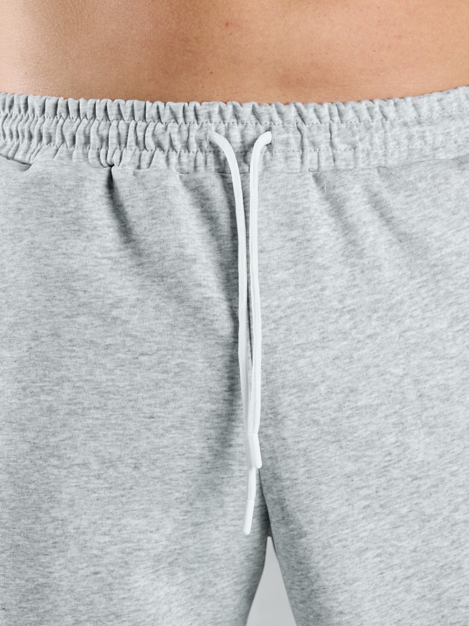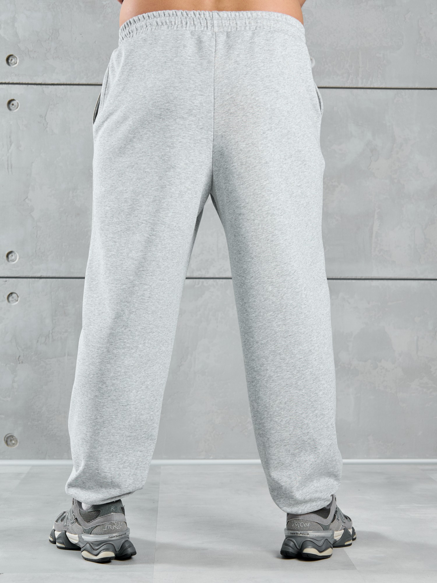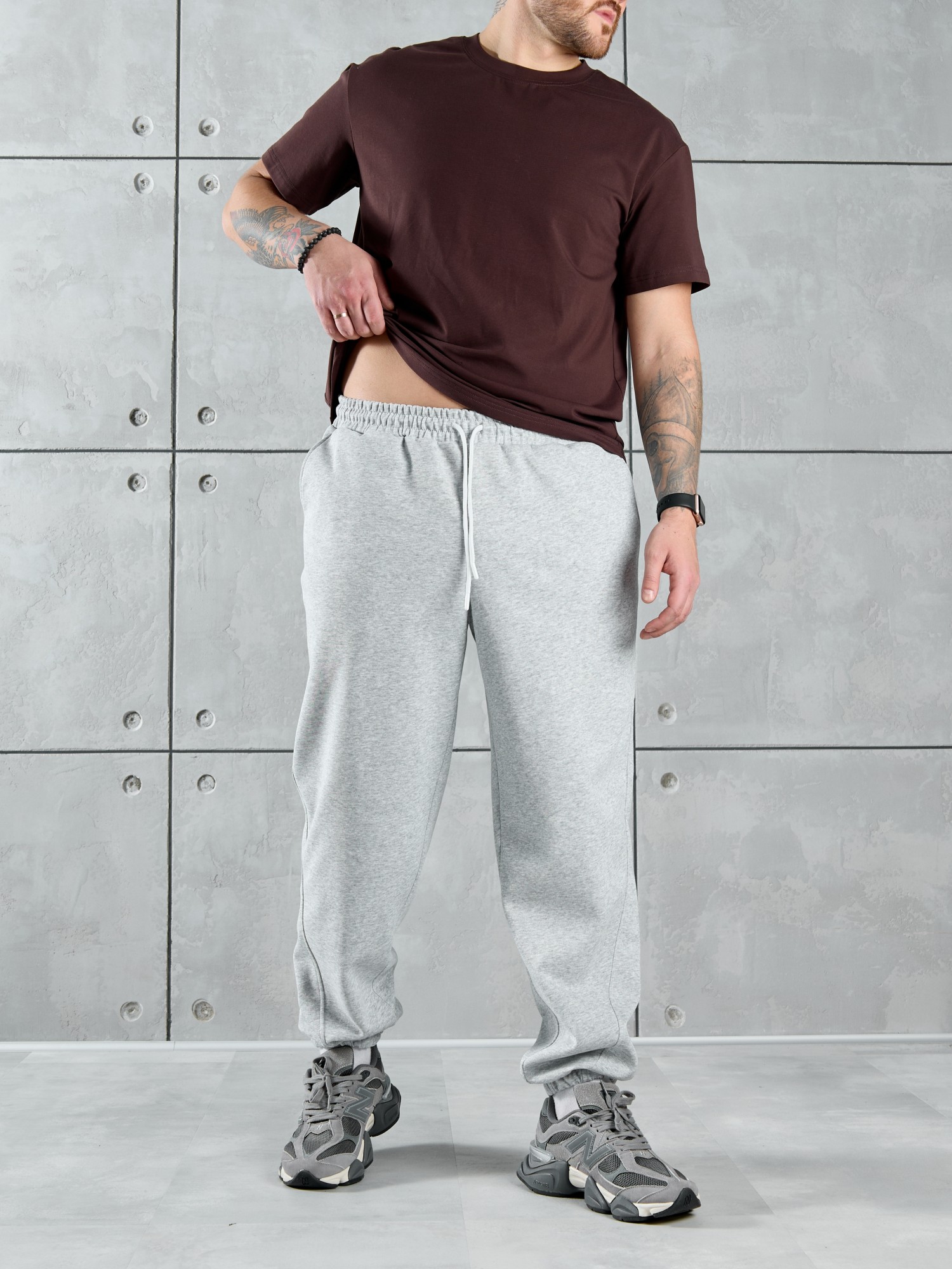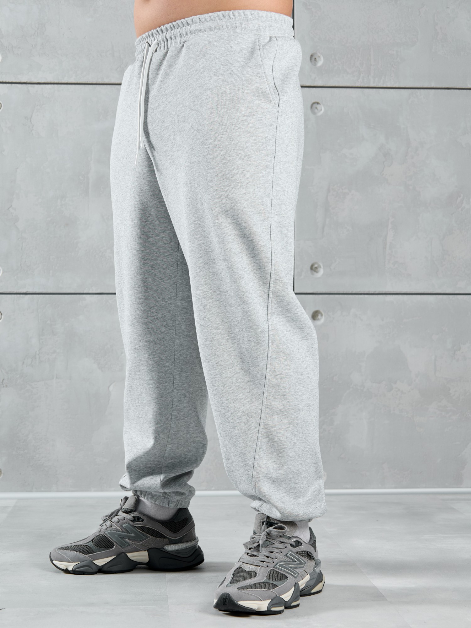 Брюки мужские из трикотажного полотна "лининг" свободного покроя, со смещенными к центрам передних половин боковыми швами, карманами в боковых швах и притачным поясом с эластичной тесьмой внутри. Нижние срезы обработаны подгибкой с эластичной тесьмой. Для регулирования степени прилегания изделия по талии предусмотрен шнурок, вставленный через две обметанные петли в центре пояса спереди.