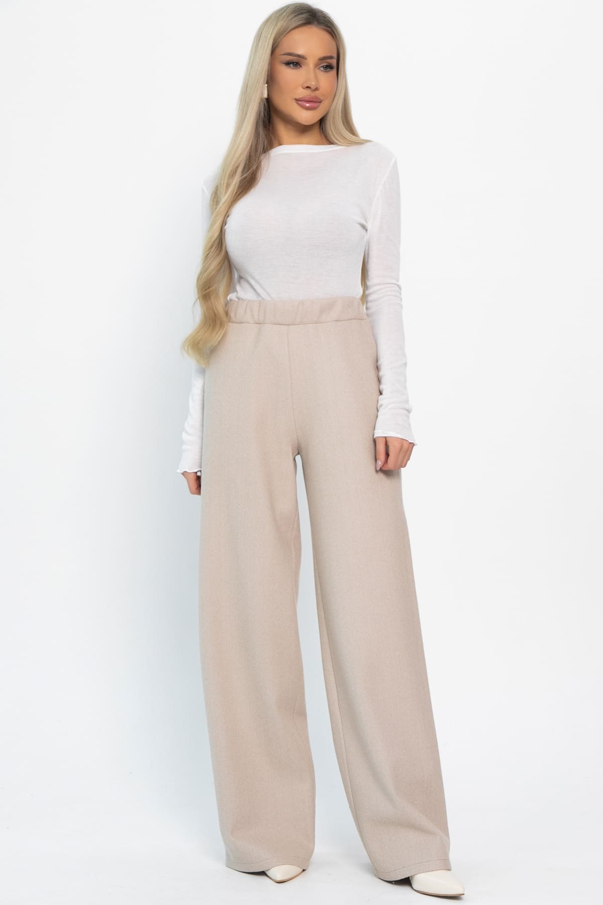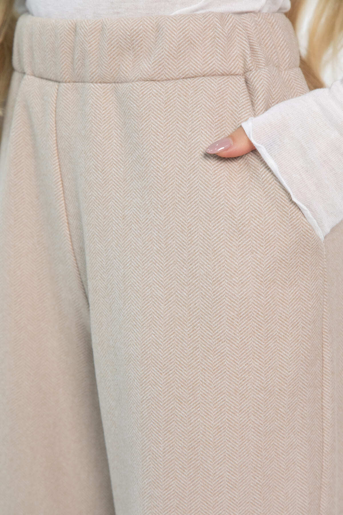 В прохладную погоду эти брюки станут идеальным выбором для тех, кто ценит комфорт и стиль. Изготовленные из мягкой ткани с добавлением шерсти, они согревают и дарят уют на протяжении всего дня. Модель подходит как для деловых образов, так и для повседневных комплектов. Универсальный бежевый цвет позволяет легко сочетать брюки с разными верхами и аксессуарами, создавая стильные и удобные образы для любого случая. Выбирайте тепло и стиль в одном изделии!