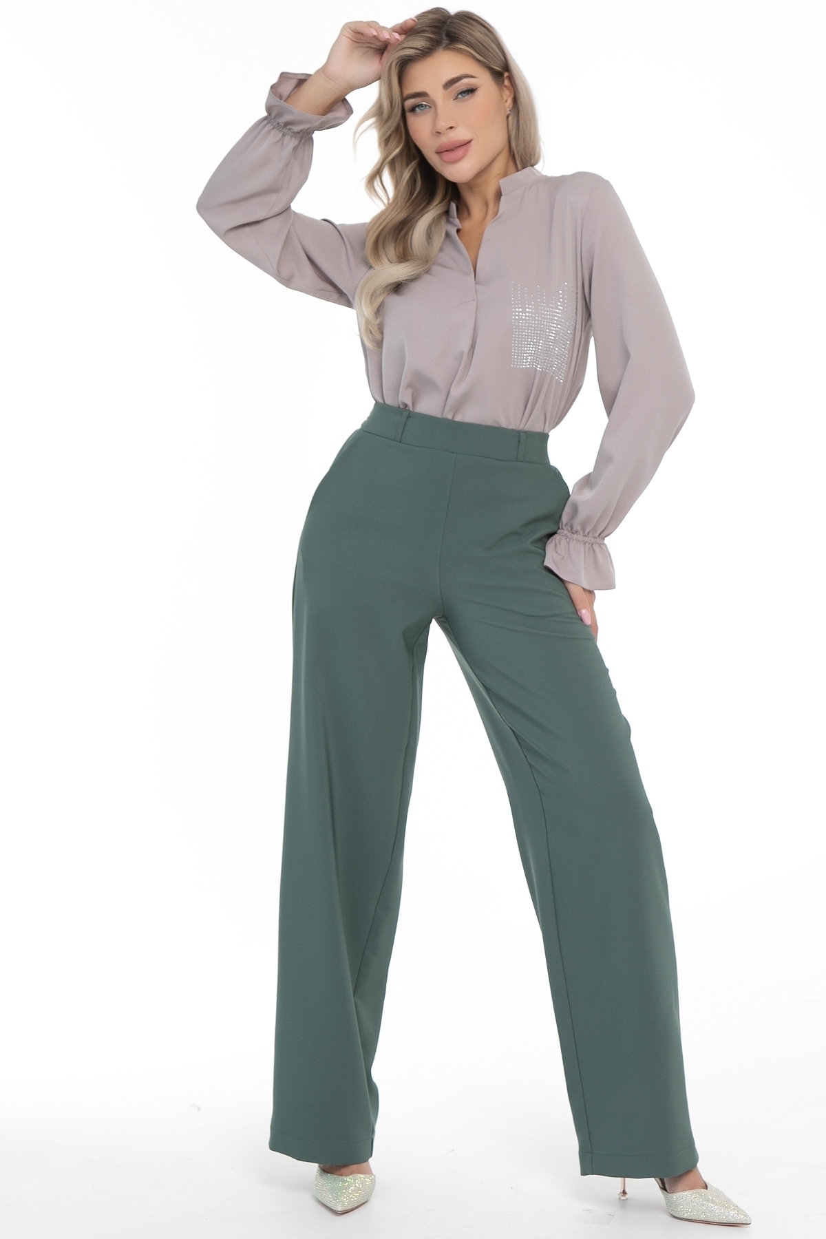 Дизайнеры Diolche подготовили стильные и комфортные брюки палаццо! Модель, которая прекрасно сядет на любой фигуре, подчеркнет достоинства и скроет все недостатки. Прямые брюки палаццо – идеальный выбор для создания стильного современного образа. Благодаря резинке на талии, такая модель идеально подойдет большинству женщин. Благодаря сочетанию вискозы и эластана в составе ткани, брюки практически не мнутся, обладают износостойкостью, обеспечивают идеальный комфорт. Пояс притачной, по переду классический с имитацией застежки, по спинке вставлена резинка шириной 4 см для плотного прилегания в области талии. В боковых швах удобные карманы.