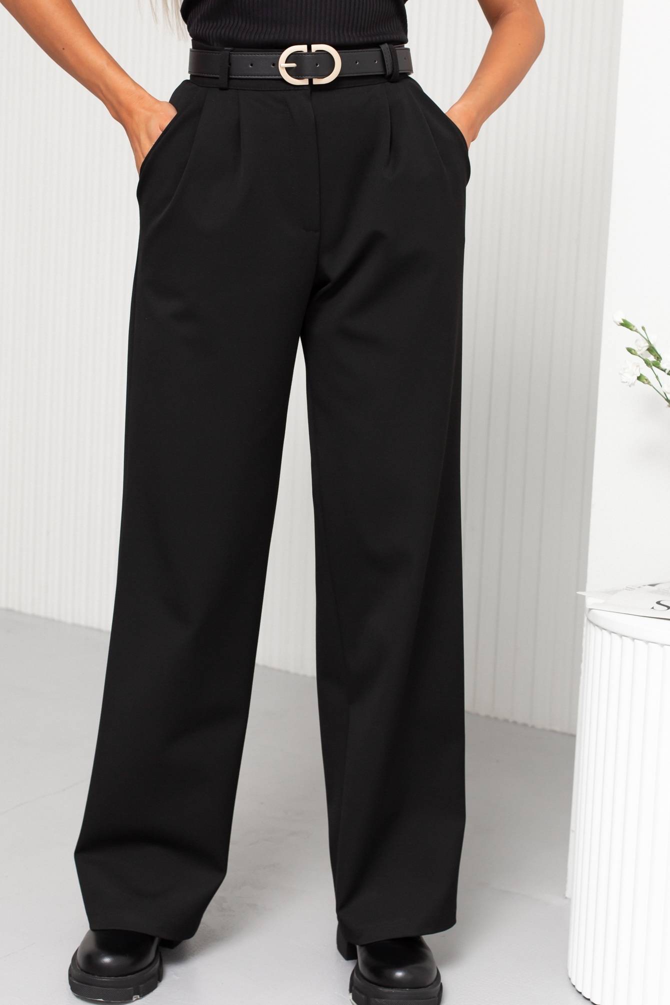 Стильные брюки прямого кроя из плотной костюмной ткани. Верх оформлен втачным поясом со шлевками под ремень. Застежка на пуговицу и молнию оформлена гульфиком. Модель имеет функциональные карманы в боковых швах.