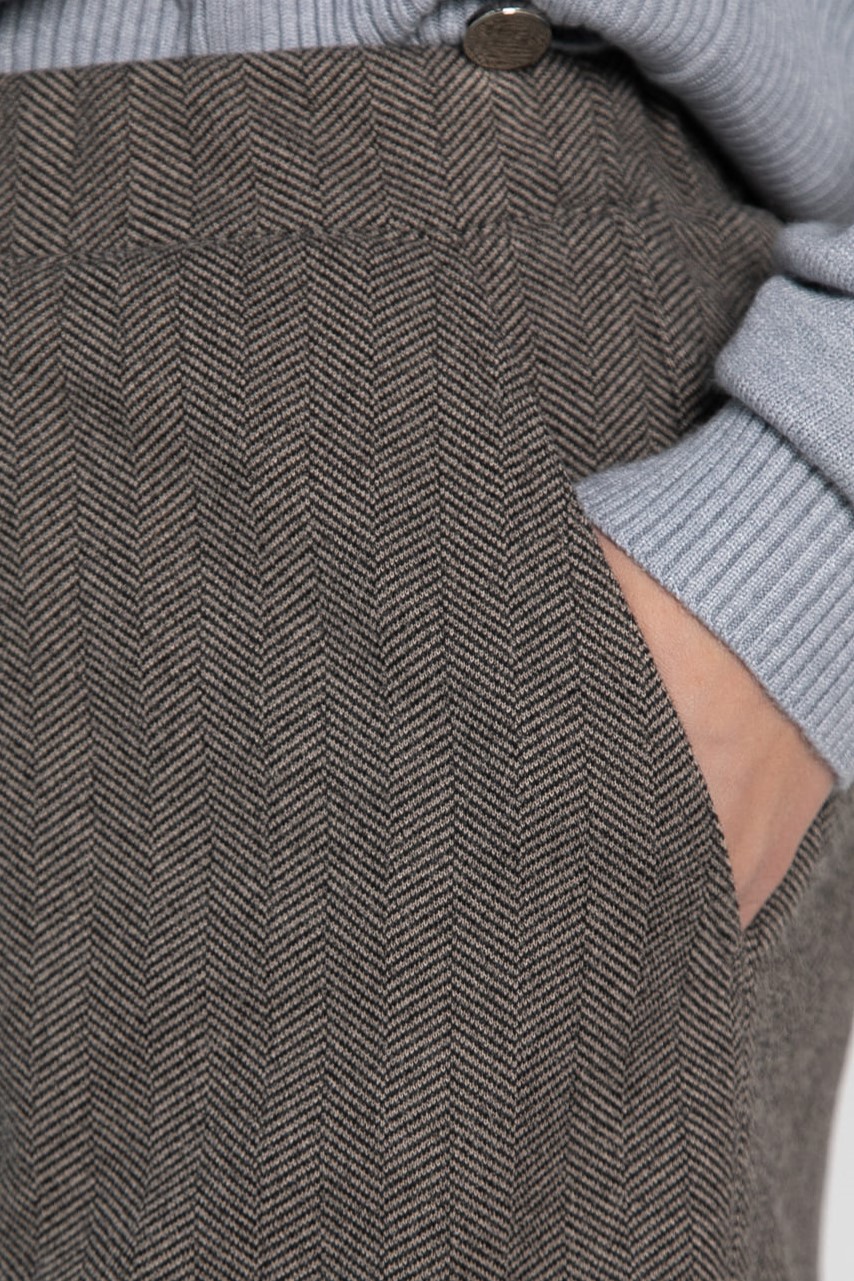 Брюки — это не просто одежда на каждый день. Это мощный инструмент, с помощью которого можно выразить себя, подчеркнуть фигуру и почувствовать уверенность. Прямые брюки — идеальный силуэт. Ненавязчивый принт «ёлочка» в брюках позволяет без проблем сочетать изделие практически с любым верхом, будь то водолазка или объемный свитер.