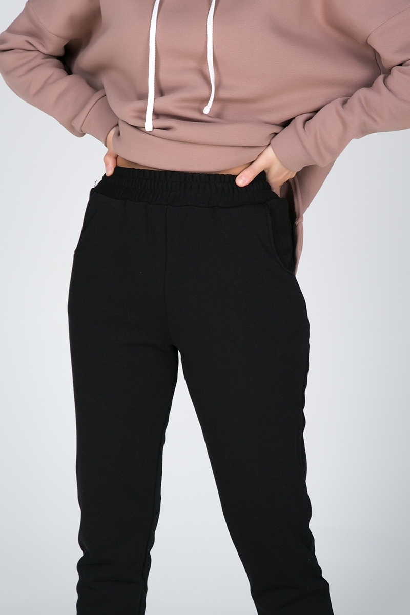 Удобные брюки с начёсом в стиле спорт-шик будут прекрасным дополнением к вашему гардеробу. Брюки с комфортной посадкой на талии, которую обеспечивает эластичный пояс на резинке. Брючины оканчиваются широкими манжетами на резинке. Модель имеет функциональные карманы в боковых швах. Идеальный вариант для спорта и отдыха.