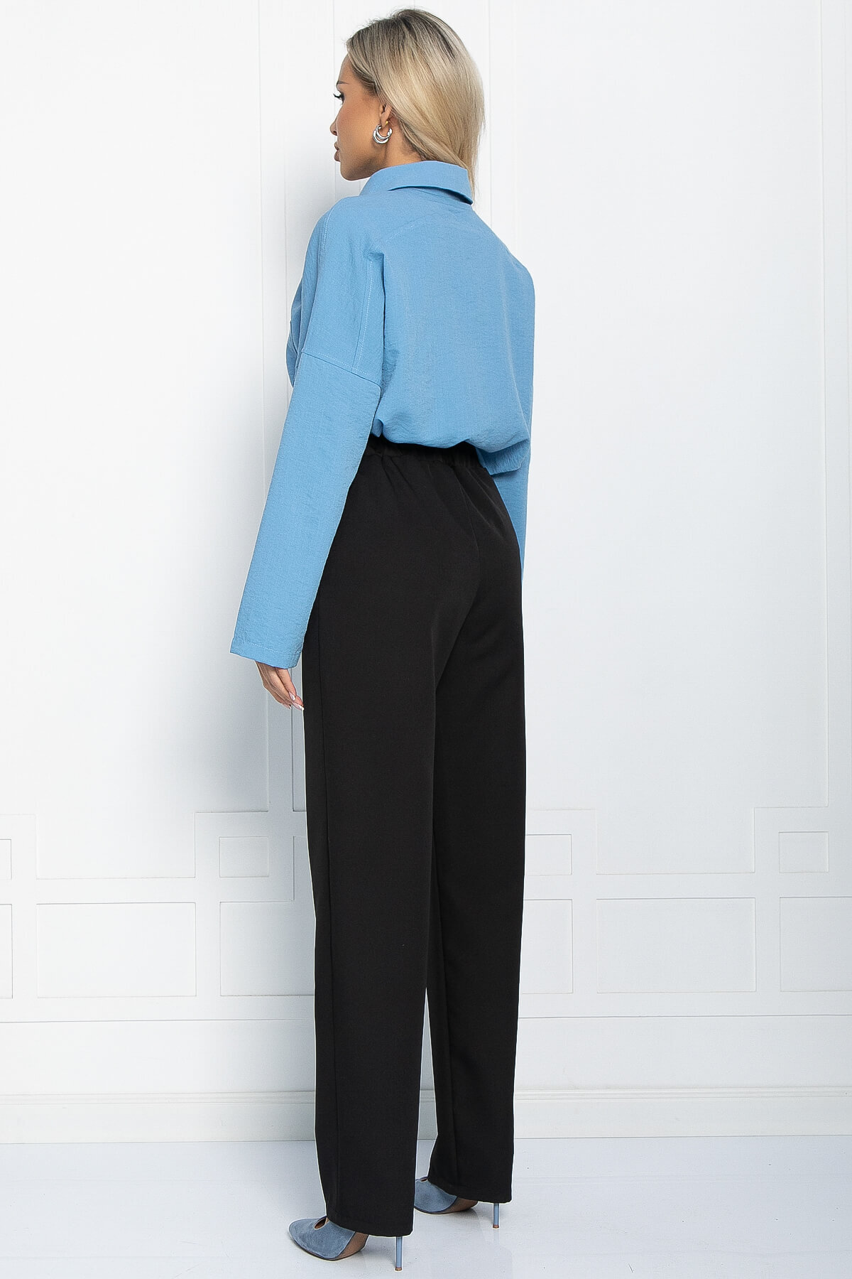 Классические брюки в классическом чёрном оттенке помогут вам в создании изящных официальных образов. Брюки по талии оснащены резинкой, что позволяет добиться комфортной посадки по фигуре. В боковых швах есть карманы. Брюки подойдут для офисного и повседневного образа. Они не сковывают движений и выглядят стильно и лаконично, вам останется только подобрать верх.