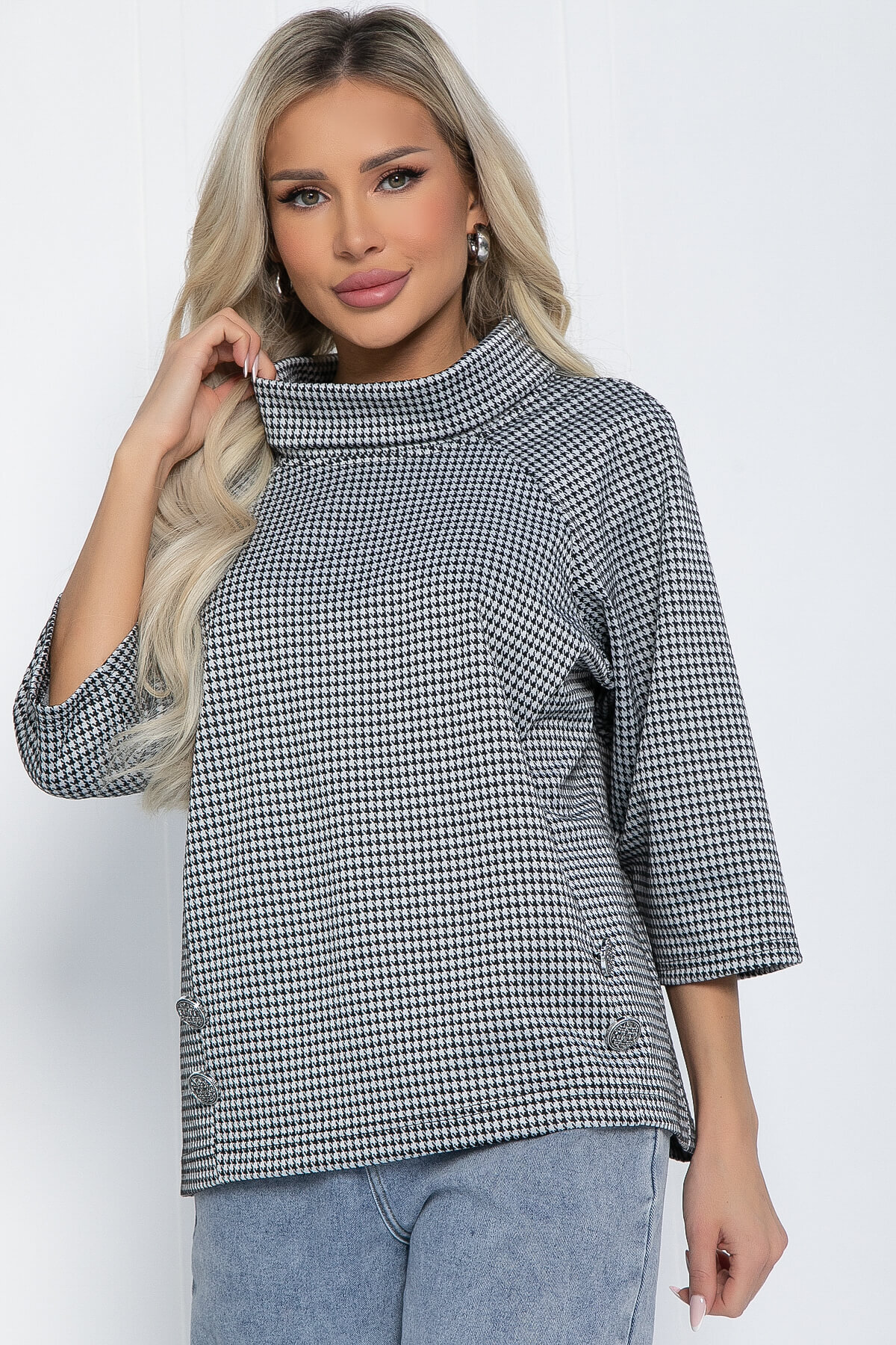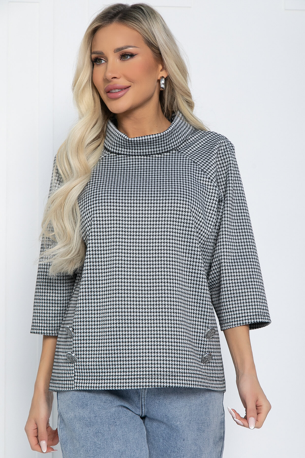 Джемпер прямого силуэта с воротником-хомутом - идеальный выбор для создания стильного и комфортного образа. Декоративные пуговки на передней части джемпера придают ему изящный и привлекательный вид. Подойдет как для повседневной жизни, так и для более формальных мероприятий. Он идеально сочетается с разными стилями и аксессуарами, позволяя создать уникальный и стильный образ. Рукав-реглан средней длины 3/4.
