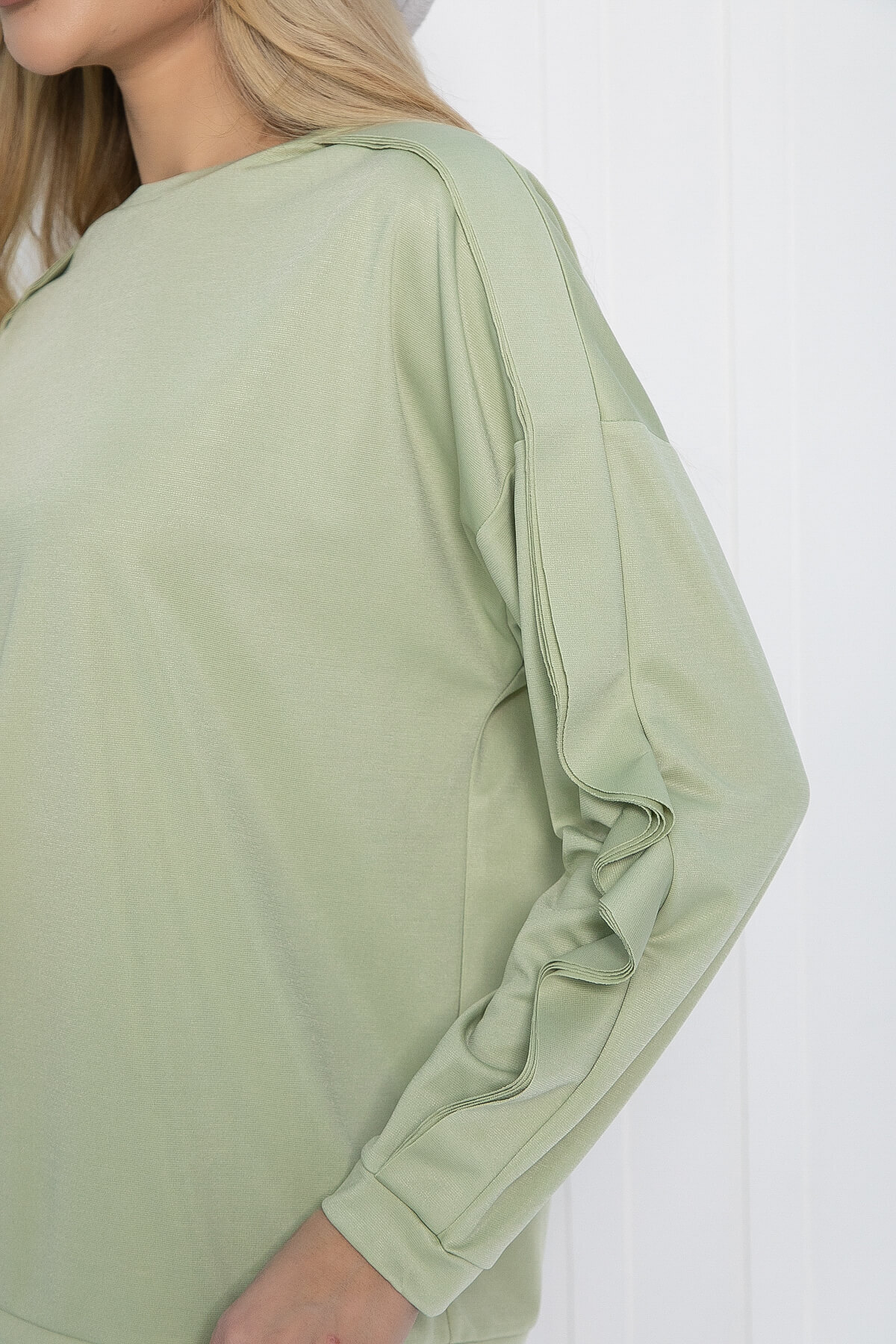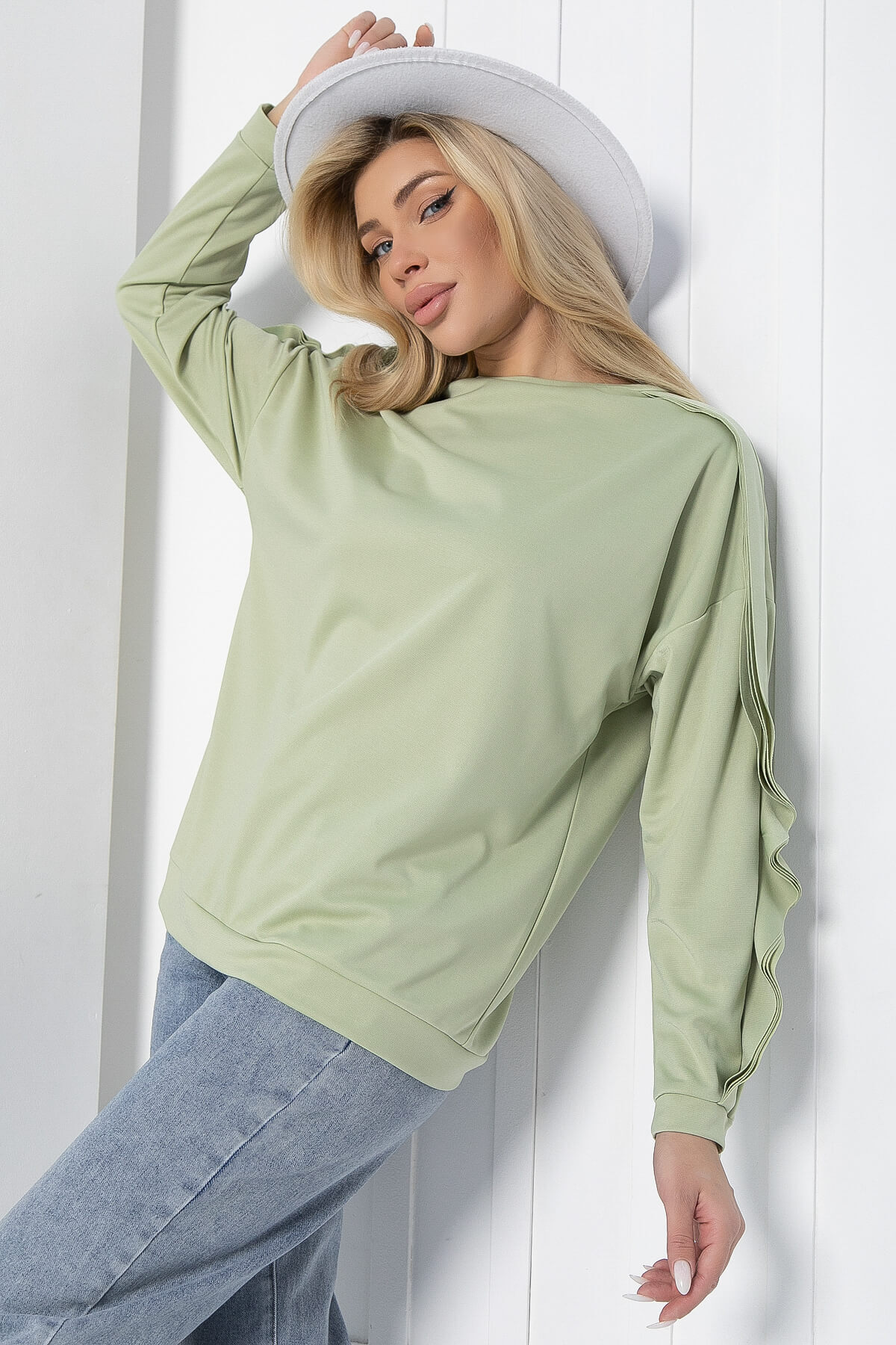 Стильный и выразительный джемпер — это то, что нужно для вашего гардероба. Он добавит изюминку в ваш образ и сделает его неповторимым. Этот универсальный джемпер без лишних деталей, таких как принты, надписи или вышивка, подойдёт к любому стилю. Особенность модели — воланы по всей длине рукавов. Они придают джемперу игривость и оригинальность.