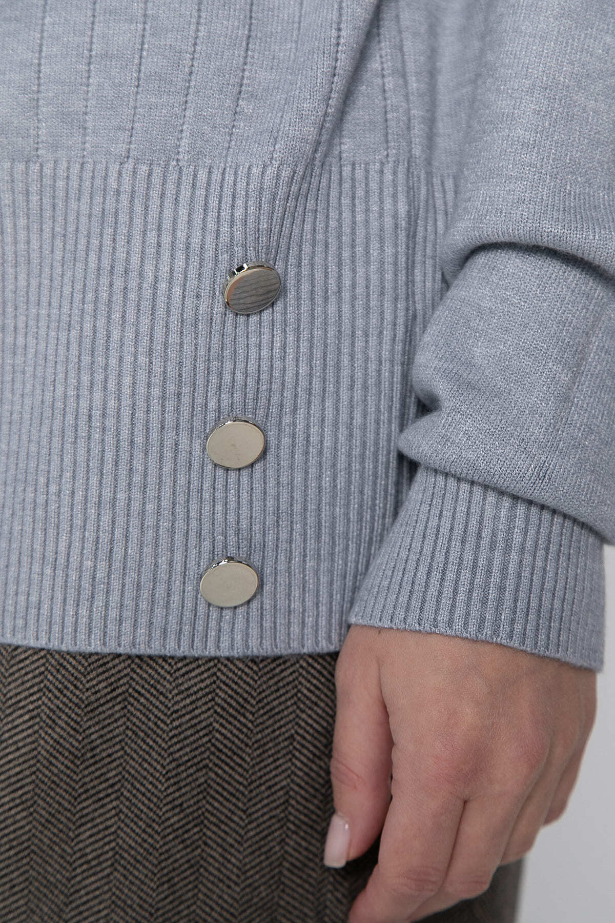 Этот джемпер – это не просто одежда, это основа для множества образов. Он создан для того, чтобы вы чувствовали себя уверенно и стильно каждый день. Его универсальность позволяет легко комбинировать его с другими элементами гардероба, создавая уникальные и запоминающиеся комплекты. По бокам расположены три изящные пуговицы, которые служат элегантным акцентом, придавая джемперу особую изюминку и делая его более выразительным, не перегружая образ. Добавьте этот джемпер в свой гардероб и наслаждайтесь его многофункциональностью и комфортом в повседневной жизни!