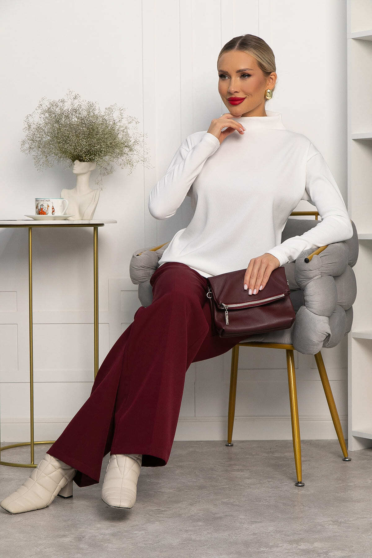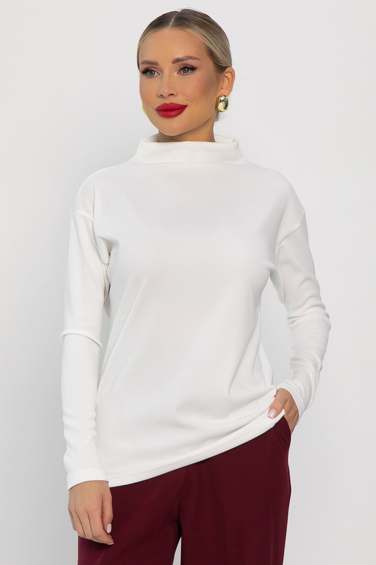 Джемпер в элегантном стиле — это отличный выбор для тех, кто ценит изысканность! Базовый молочный оттенок придает ему универсальность. Он изготовлен из мягкого трикотажного полотна «лапша», что делает его идеальным дополнением к строгим деловым костюмам.