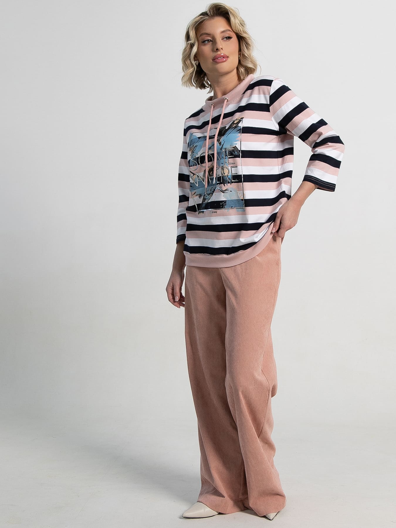 Преобразите свой повседневный образ с этим эффектным джемпером, который добавит яркости и уюта вашему гардеробу. Он идеально подходит для прогулок, встреч с друзьями и создания стильных повседневных ансамблей. Модный полосатый узор в сочетании с яркой фотопечатью птичек на груди придает изделию игривое и запоминающееся настроение. Горловина украшена воротником-хомутом, что добавляет нотку элегантности.