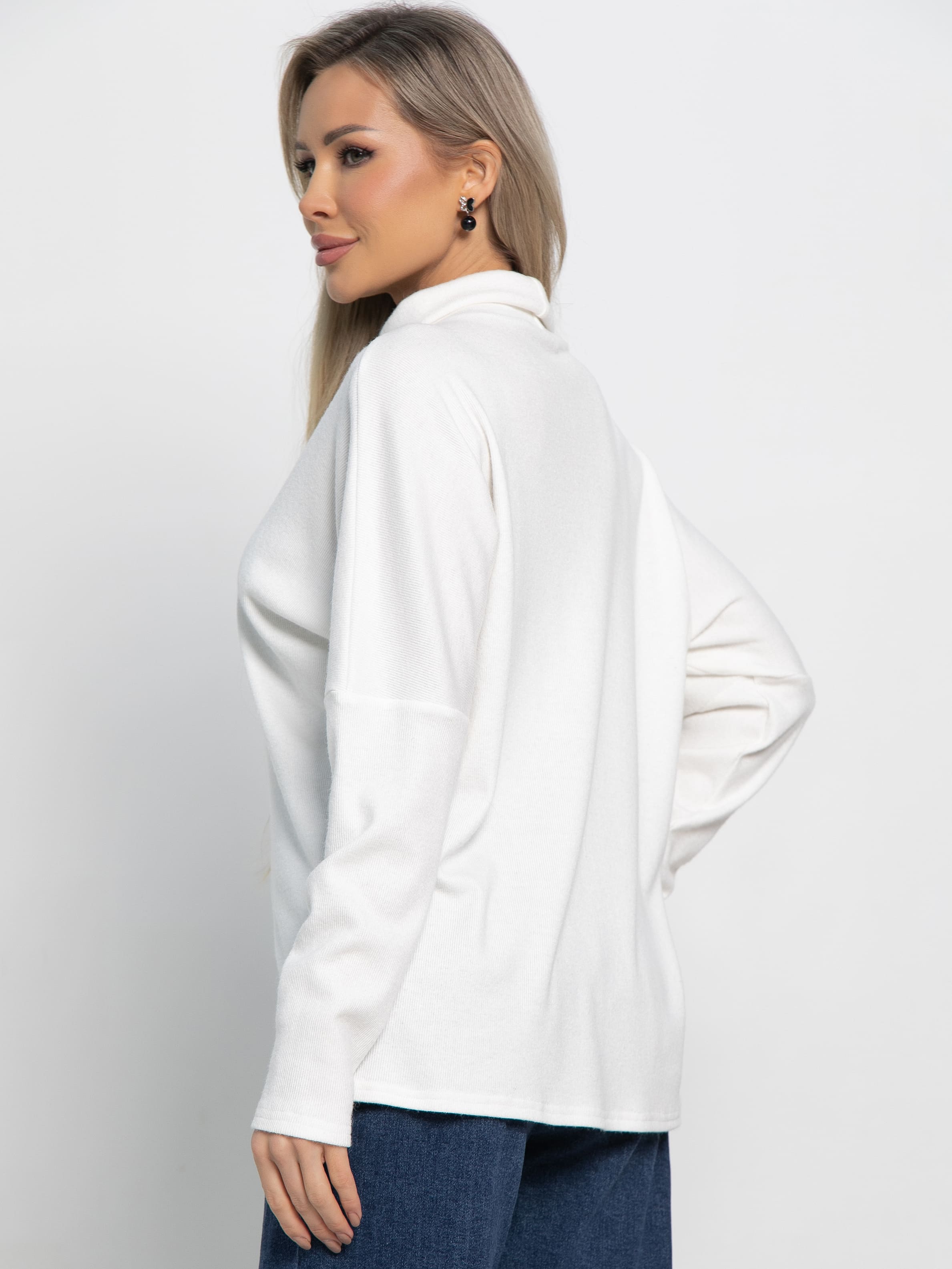 Разнообразьте свой гардероб стильным джемпером, который станет универсальным элементом вашего образа. Изготовленная из мягкого вязаного трикотажа, она обеспечит вам комфорт на протяжении всего дня. Джемпер имеет спущенные рукава и горловину в форме хомута. Каплевидный вырез привлекает внимание, придавая образу изысканности. Эта модель станет основой для создания разнообразных стильных образов. Она идеально подходит для прохладных вечеров и осенних прогулок, и непременно займёт почётное место в вашем гардеробе.