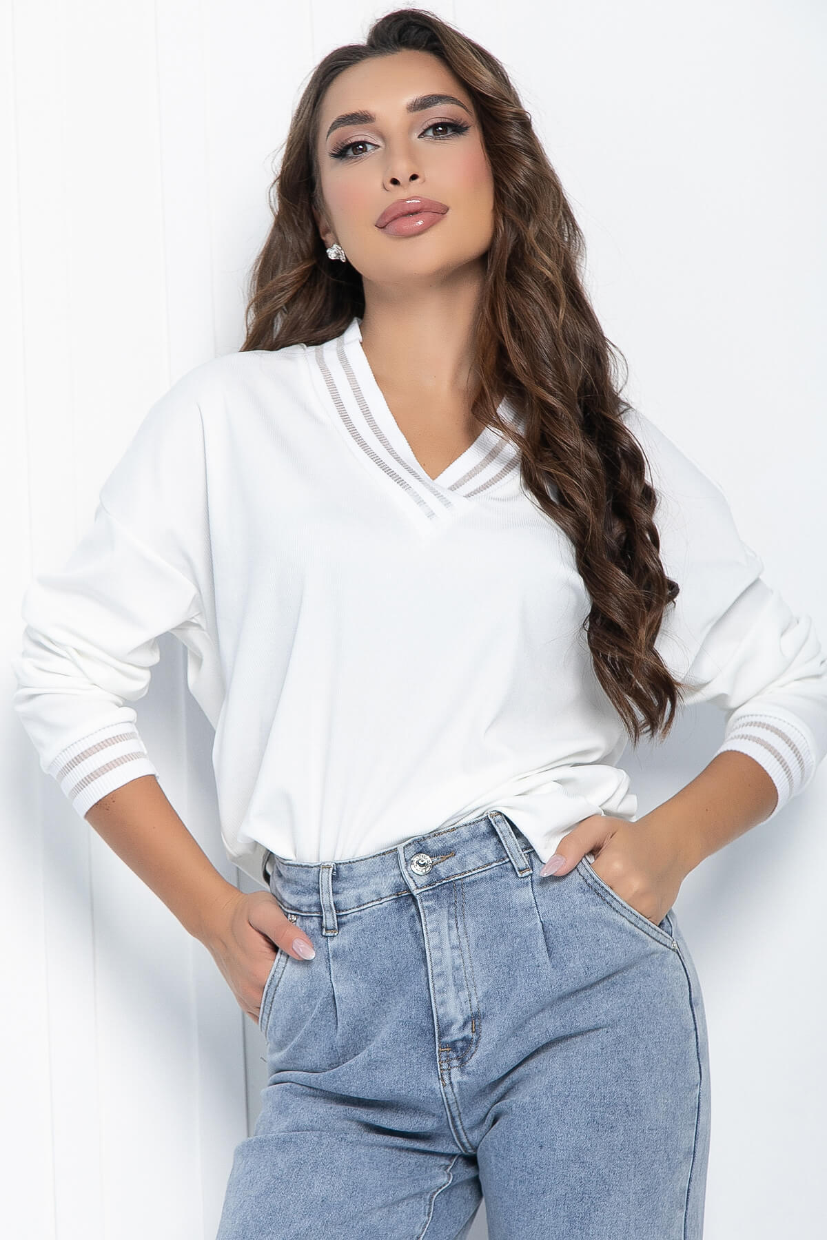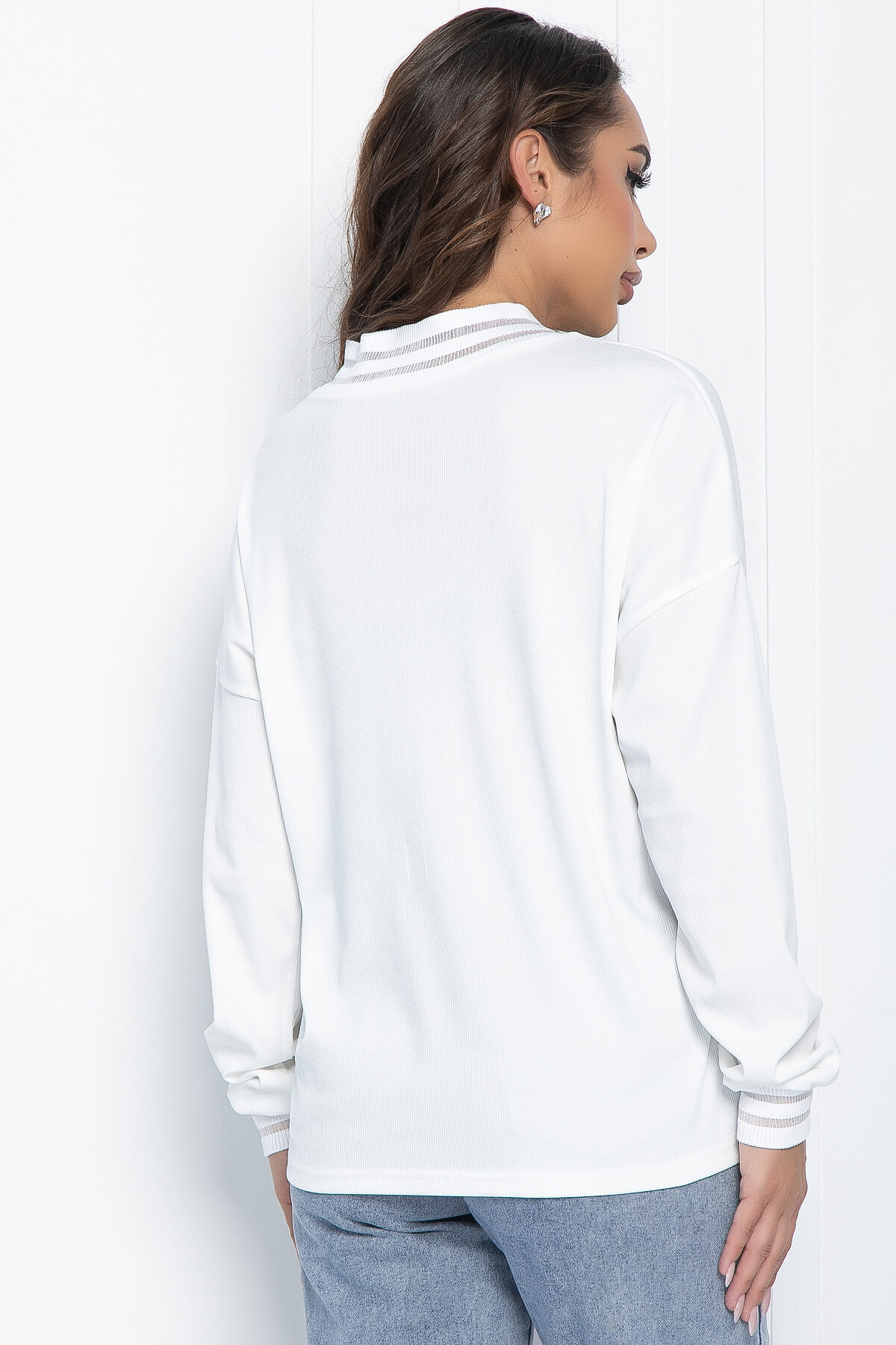 Базовый джемпер подойдёт для создания повседневных и офисных образов. Акцентные вставки из сетки деликатно украшают образ. Изделие имеет полуприлегающий силуэт, втачной длинный рукав со спущенным плечевым швом. Можно носить навыпуск или под заправку. Благодаря своему оттенку хорошо сочетается практически с любым низом.