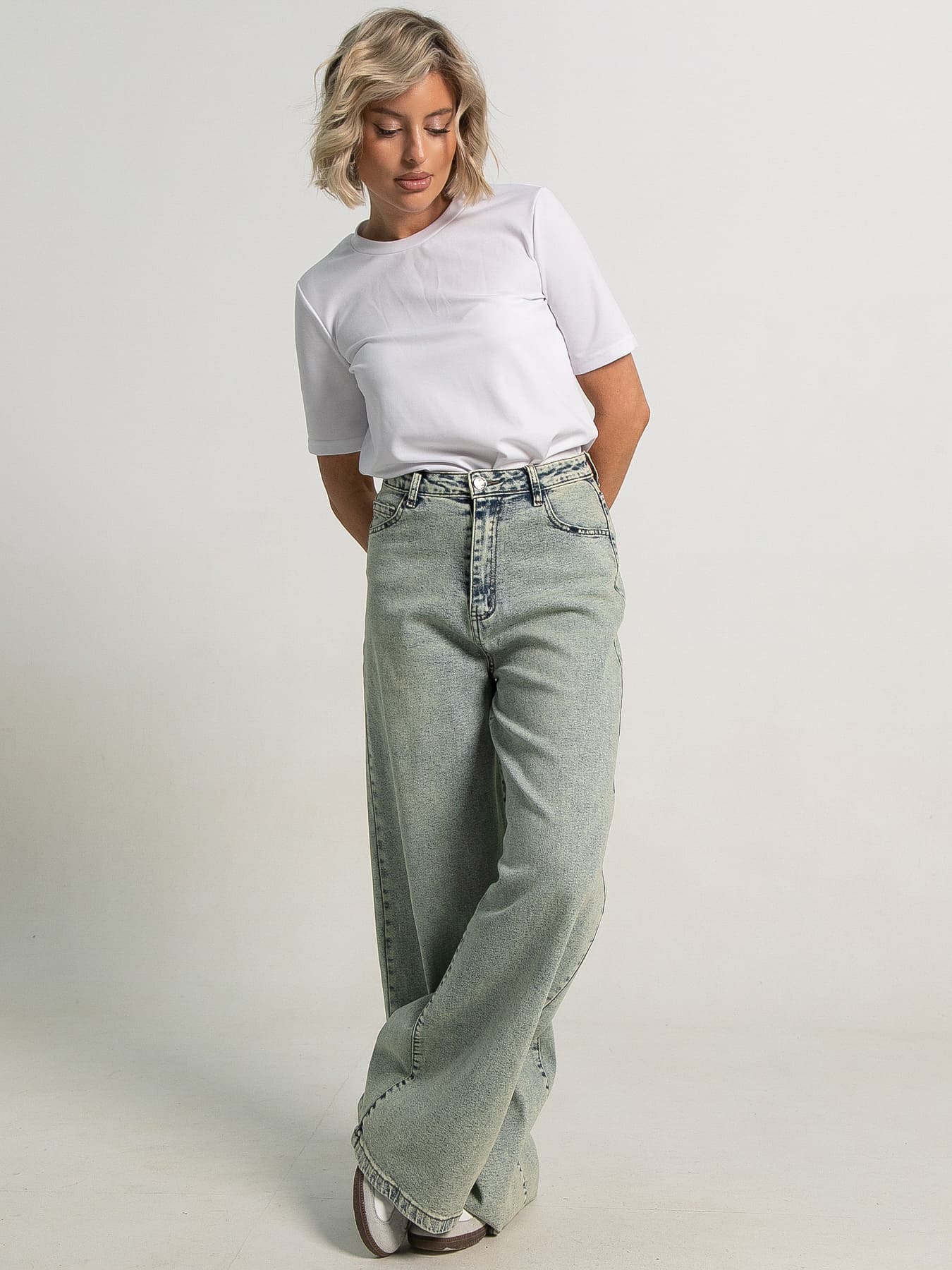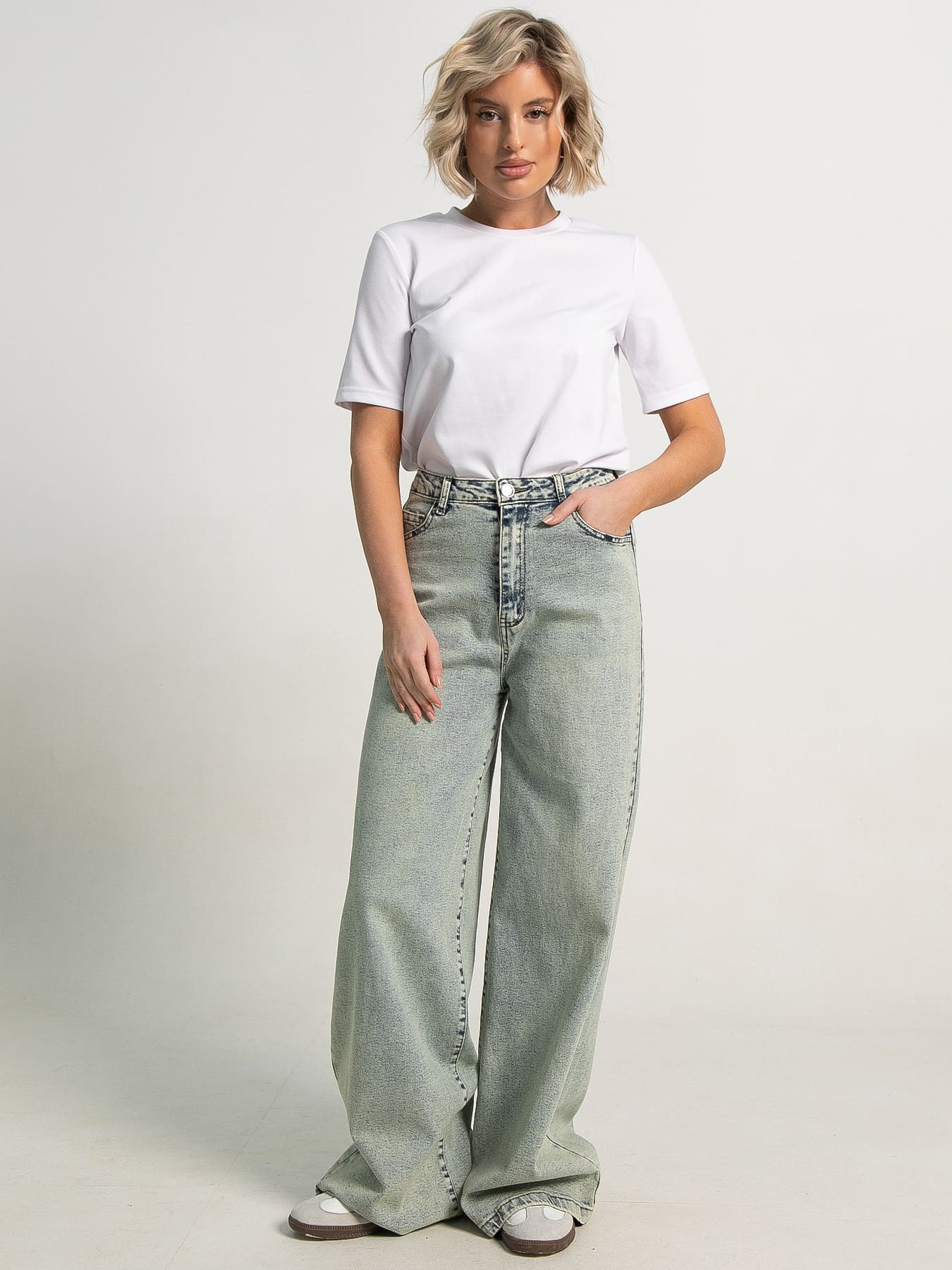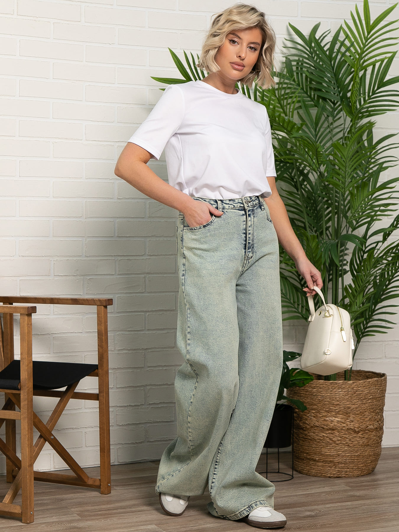 Эти джинсы сочетают классику и современные тренды, позволяя создавать стильные образы каждый день. Голубой цвет с эффектом состаривания добавляет безупречный стиль. Традиционная застежка на пуговицу и молнию обеспечивает идеальную посадку и комфорт. Практичные передние и задние карманы удобно держать все необходимое. Крой с расширением от бедра, что придает силуэту элегантность и визуально удлиняет ноги. Создайте свой уникальный стиль с этими джинсами!