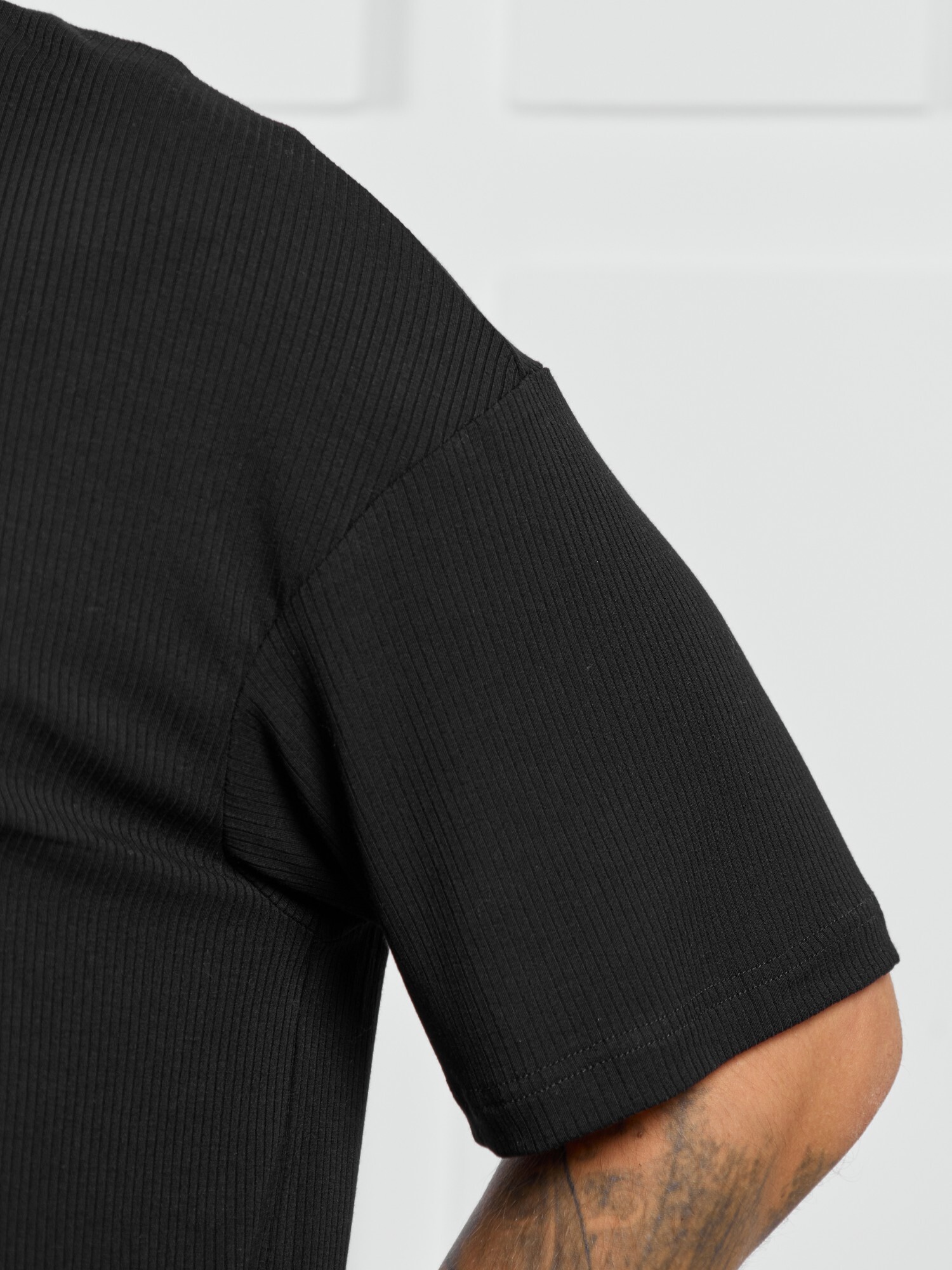 Футболка мужская из пластичного однотонного трикотажного полотна в рубчик, приятного к телу. Модель свободная, со спущенной линией плеч, рукавами длиной до локтя. Может подойти для отдыха, прогулок и занятий спортом.